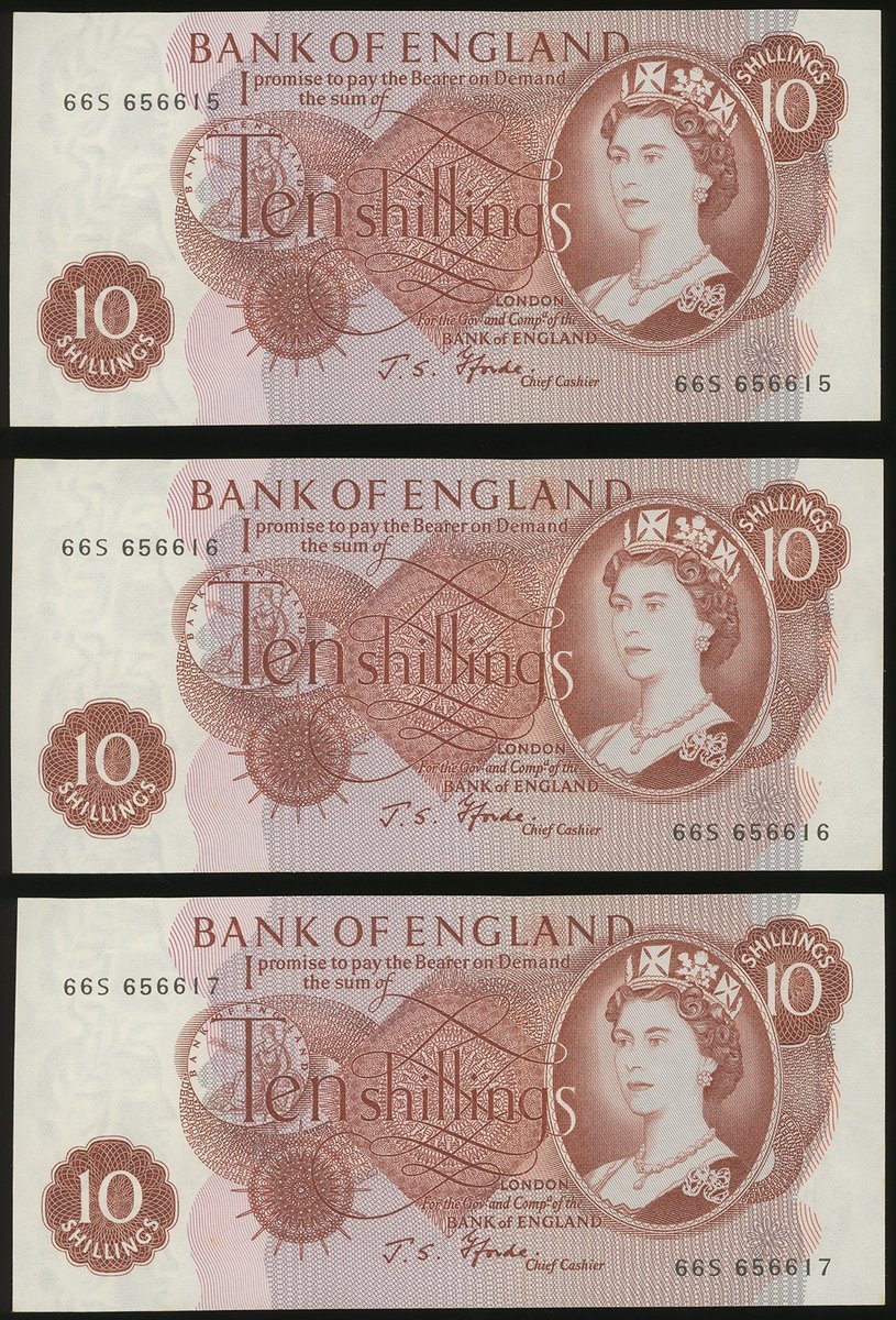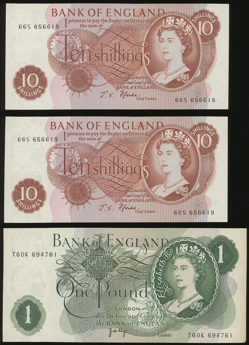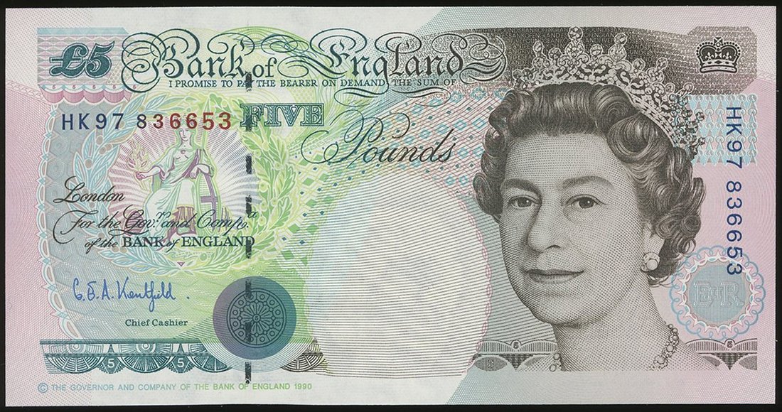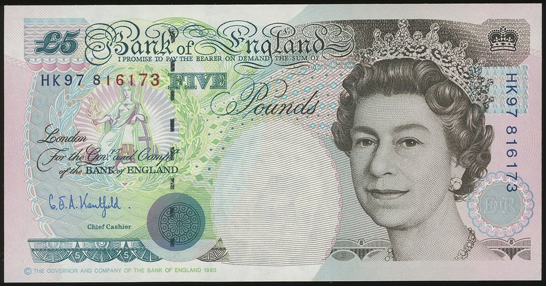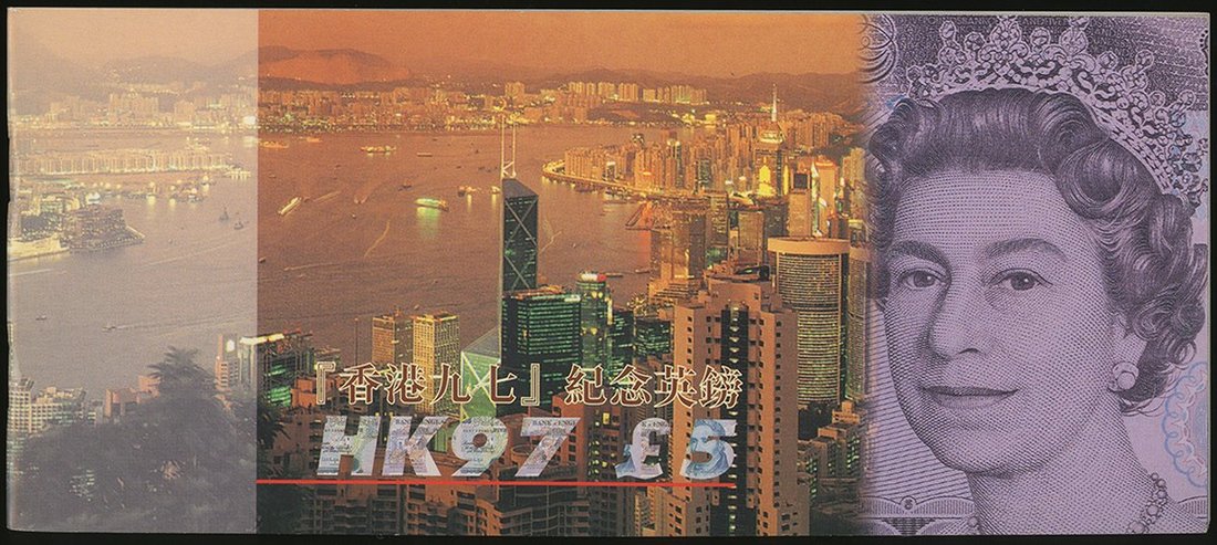 Great Britain, 5 pounds, 1997 issued for the Handover of Hong Kong, special prefix HK97 816173, also a group of 5 10 shillings, 66S 656615-19 and 1 pound, T60K 694761,