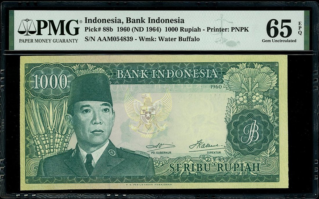 1960年印尼1000盾,編號AAM054839,PMG 65EPQ