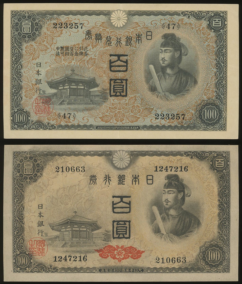 1930, 1944, 1945及1946年日本100元一組4枚,GVF