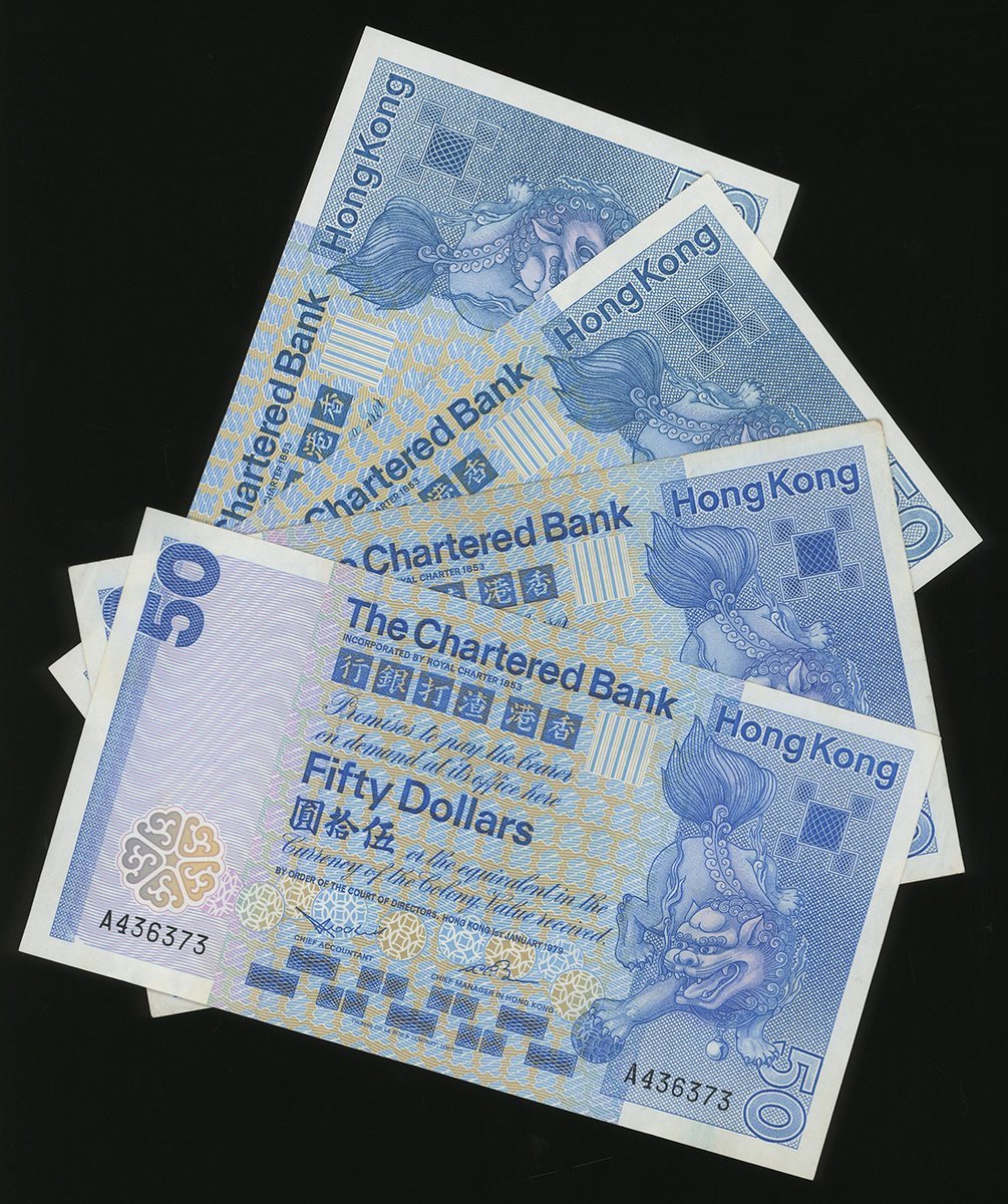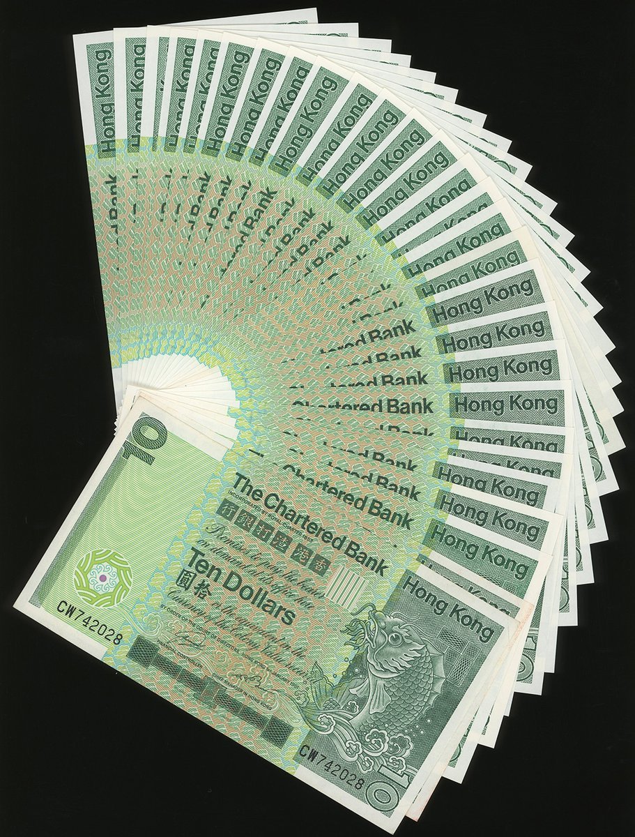 渣打銀行一組33枚,包括1981年10元29枚,1979及82年50元各2枚,大部分10元為UNC品相,50元GVF品相