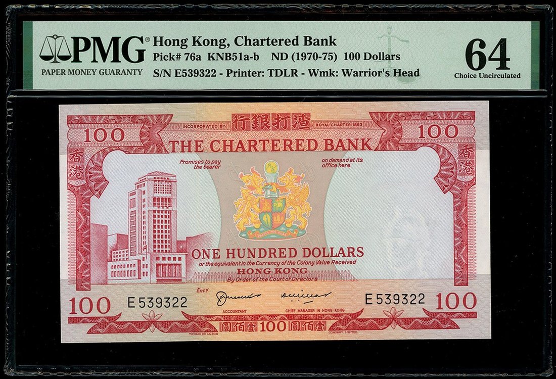 The Chartered Bank, $100, ND (1970-1975), serial number E539322, (Pick 76a), PMG 64 Choice Uncirculated