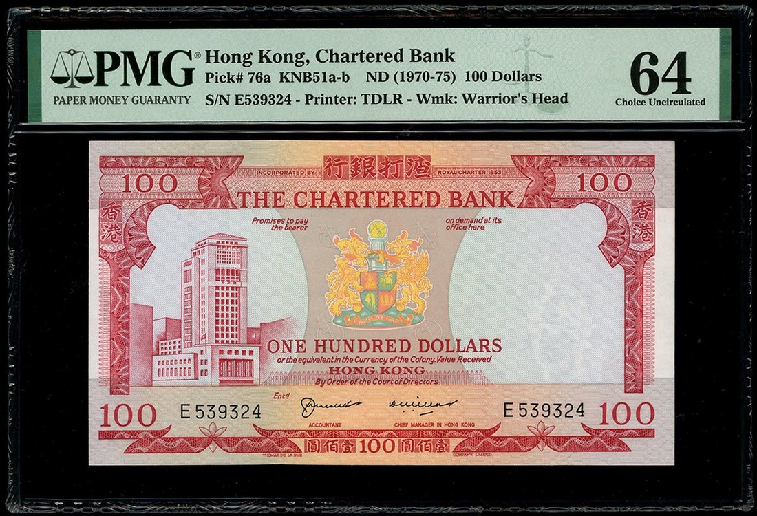 1970-75年渣打銀行100元,無日期,編號E539324,PMG 64