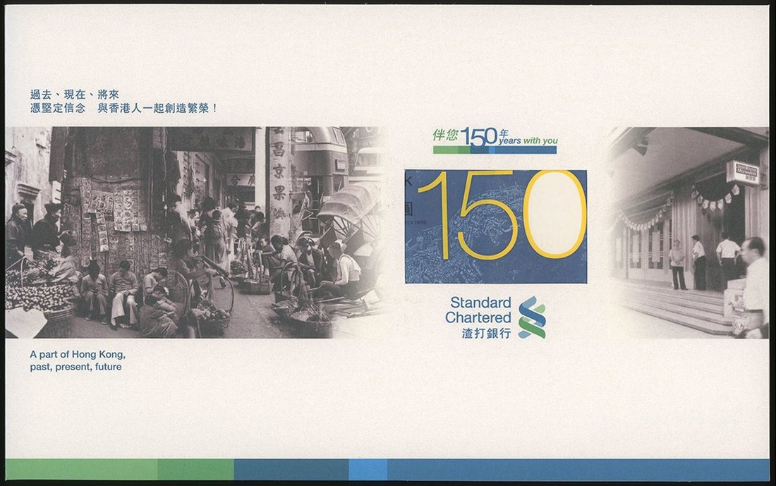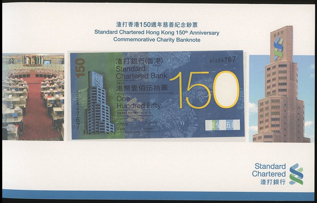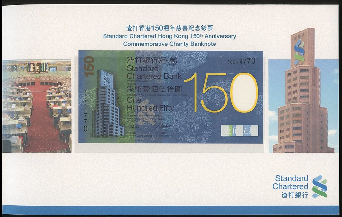 2009年渣打銀行150元一對,150週年紀念版,編號SC254767 及 SC254770,UNC,連原封套