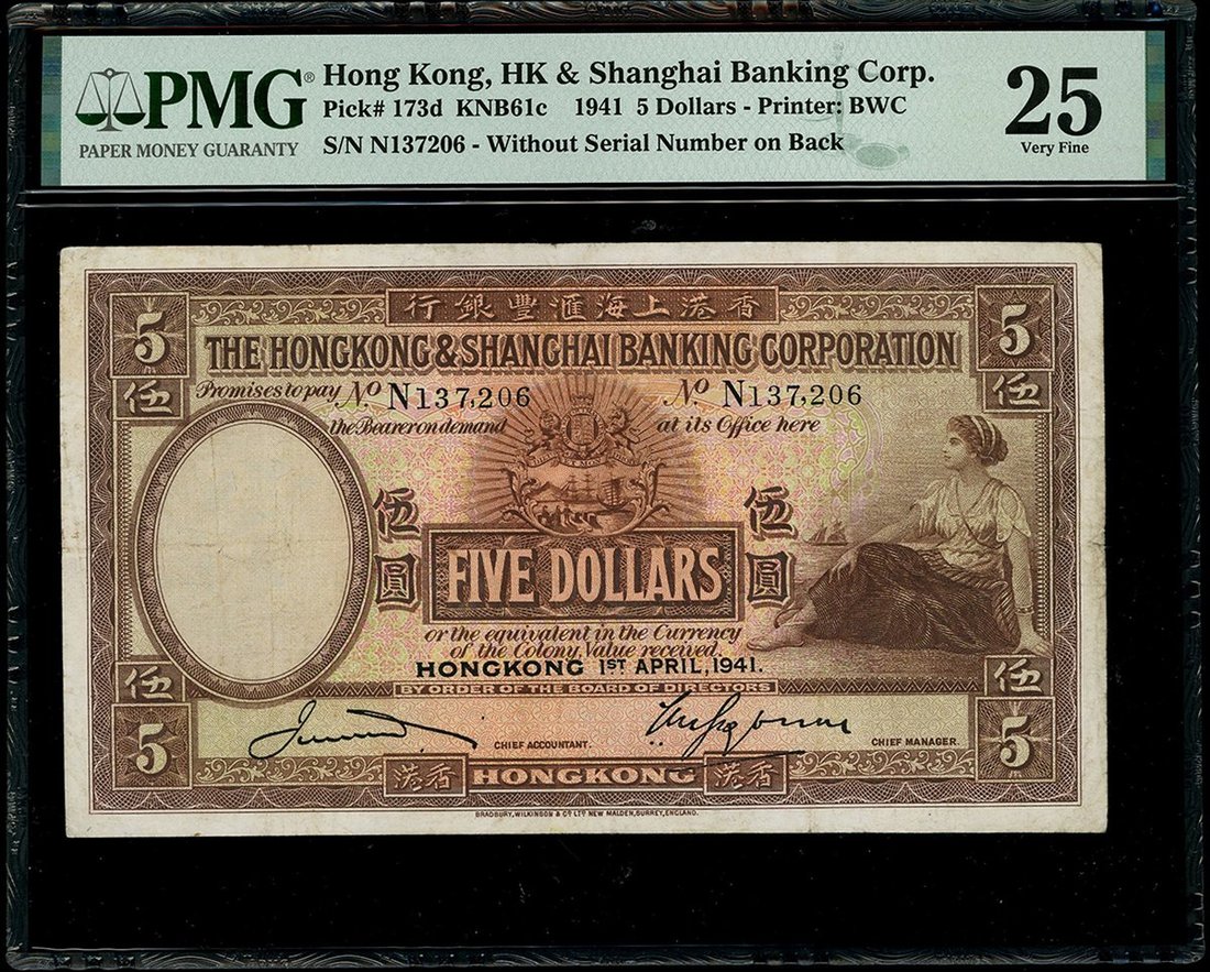 匯豐銀行1941年5元及1948年10元,編號N137206 及 D/H 651263,分別評 PMG 25 及 20