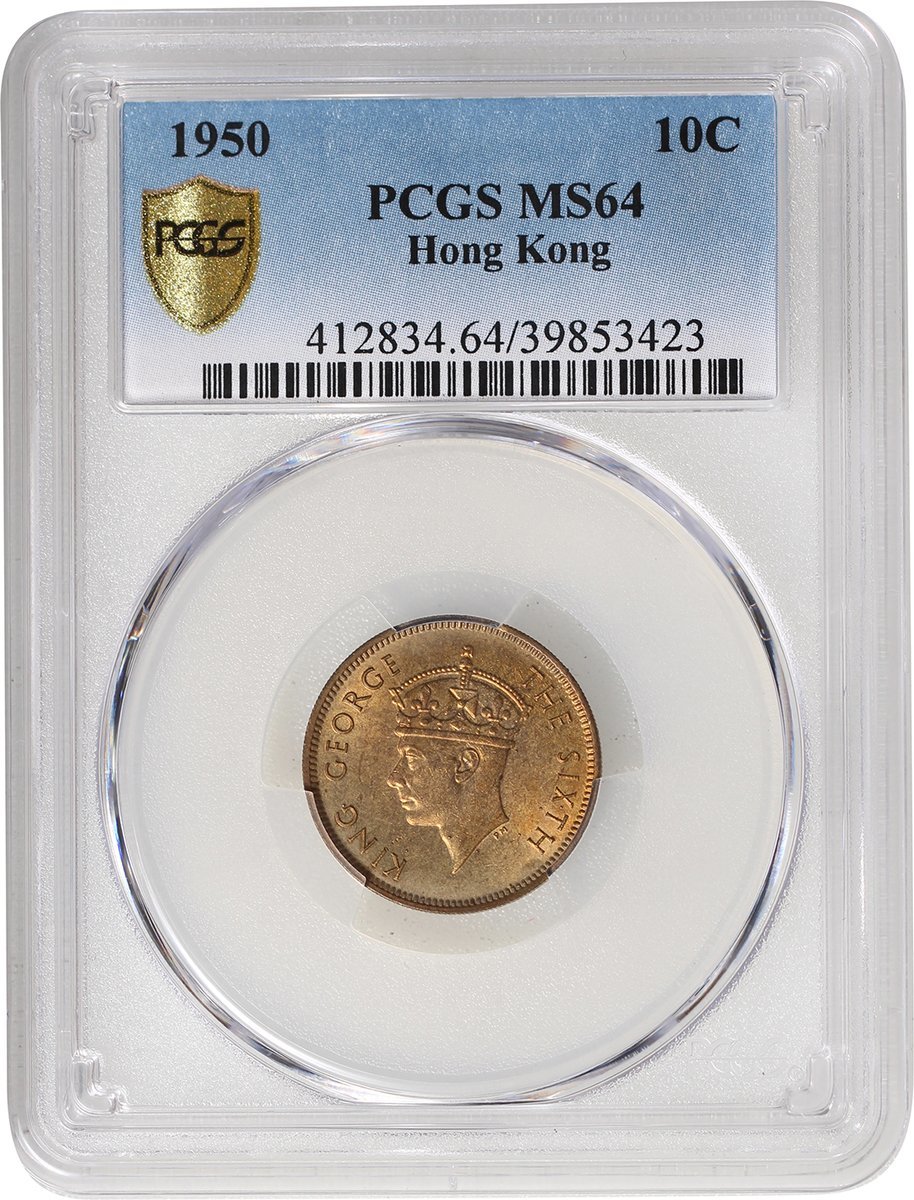 Hong Kong, a pair of copper nickel 10 cents, 1949 and 1950, both PCGS graded MS64.(2)