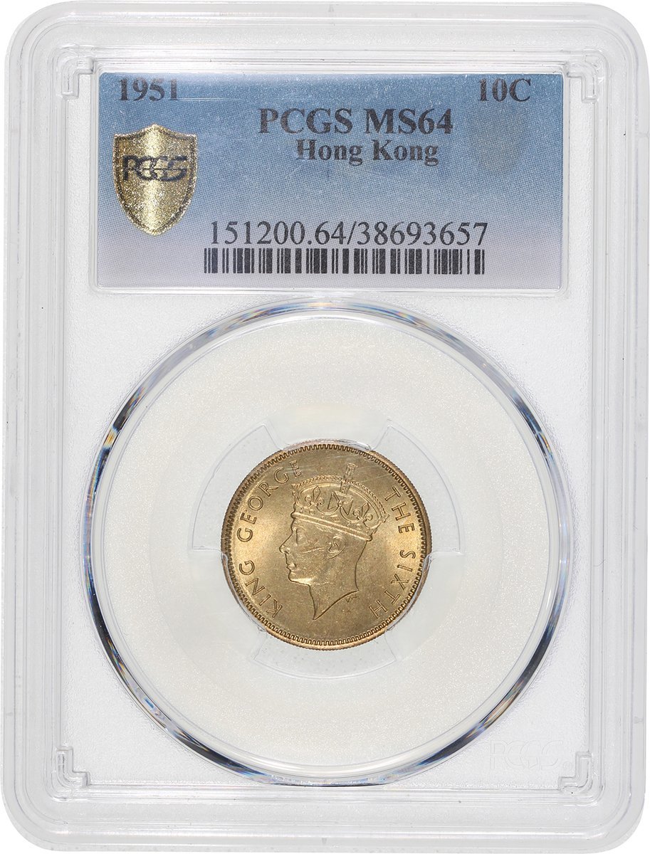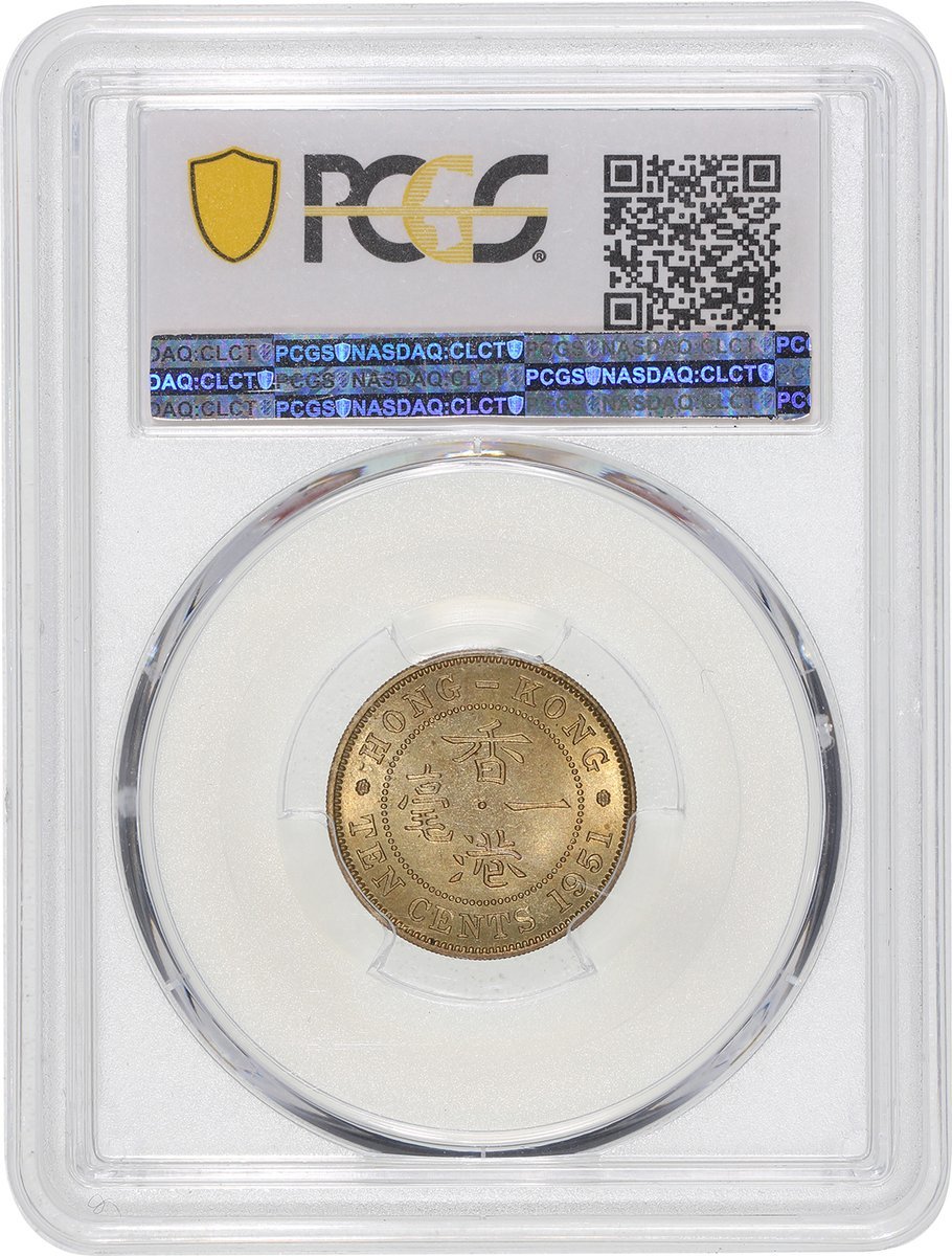 Hong Kong, brass 10 cents, 1951, PCGS MS64 and difficult to find