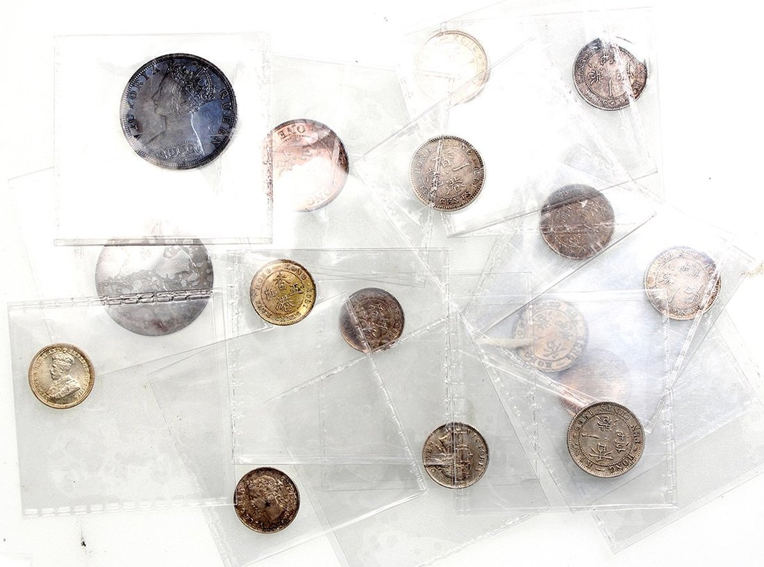 香港角分幣一組16枚,包括1仙3枚,5仙5枚及1毫8枚,VF至AU