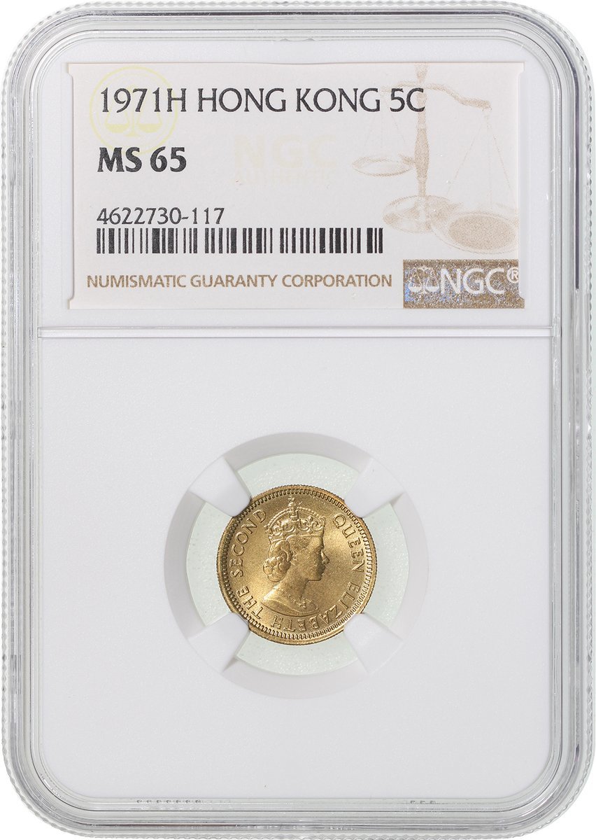 Hong Kong, nickel brass 5 cents, 1971H, NGC MS65