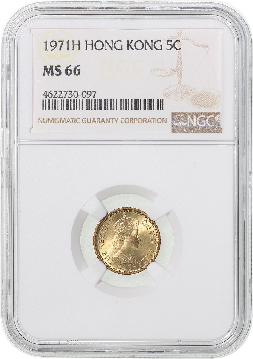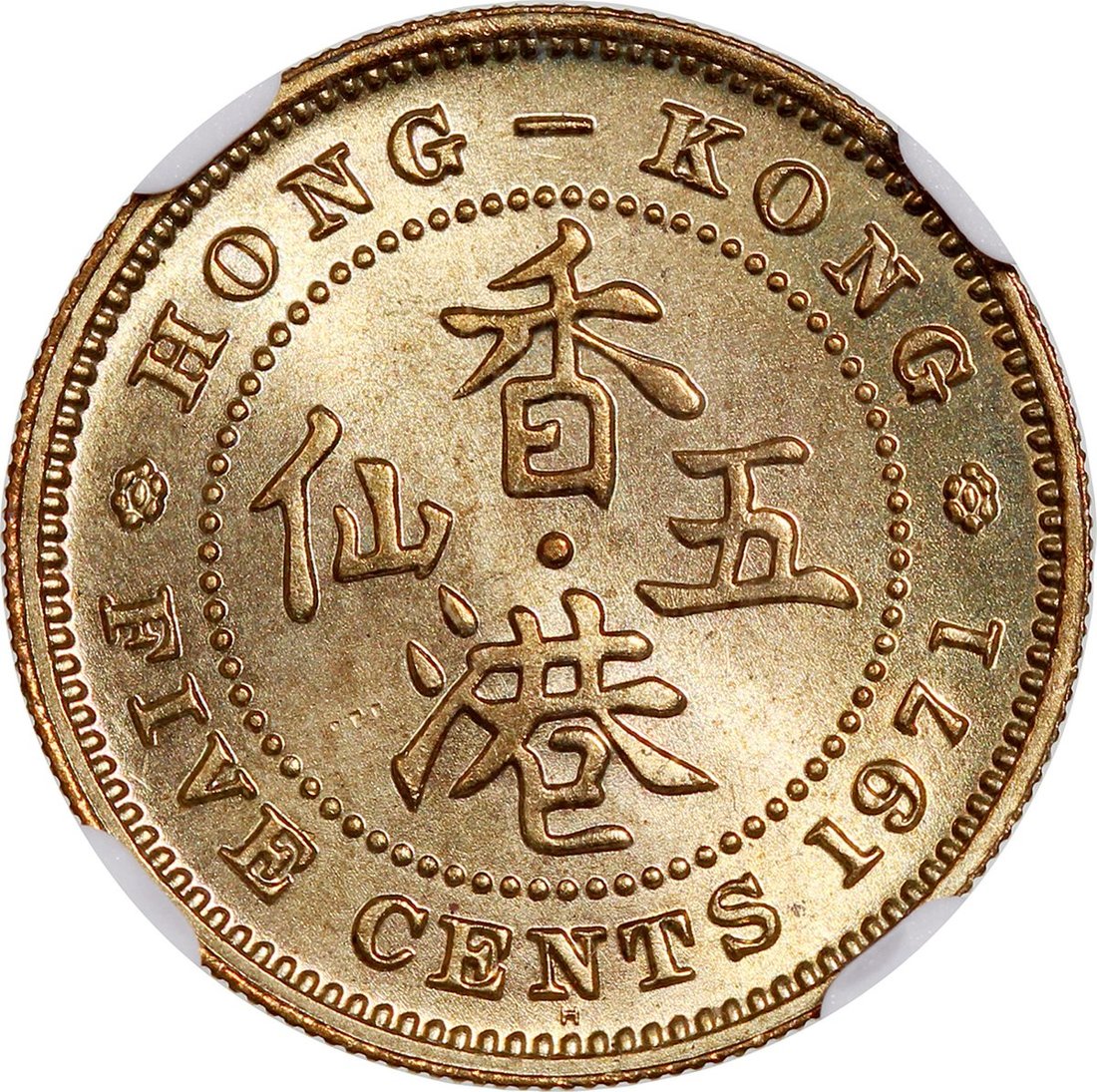 Hong Kong, nickel brass 5 cents, 1971H, NGC MS66
