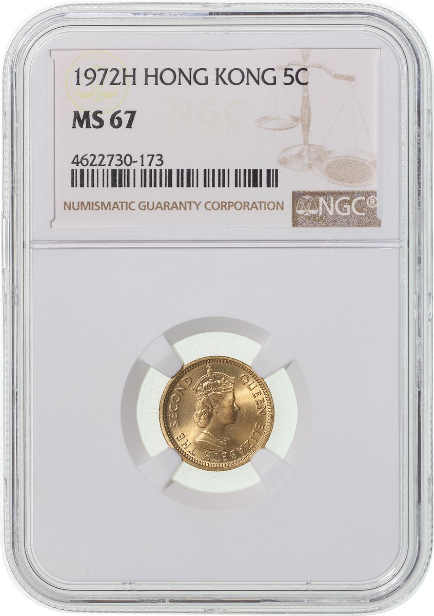 1972H年香港5仙,NGC MS67