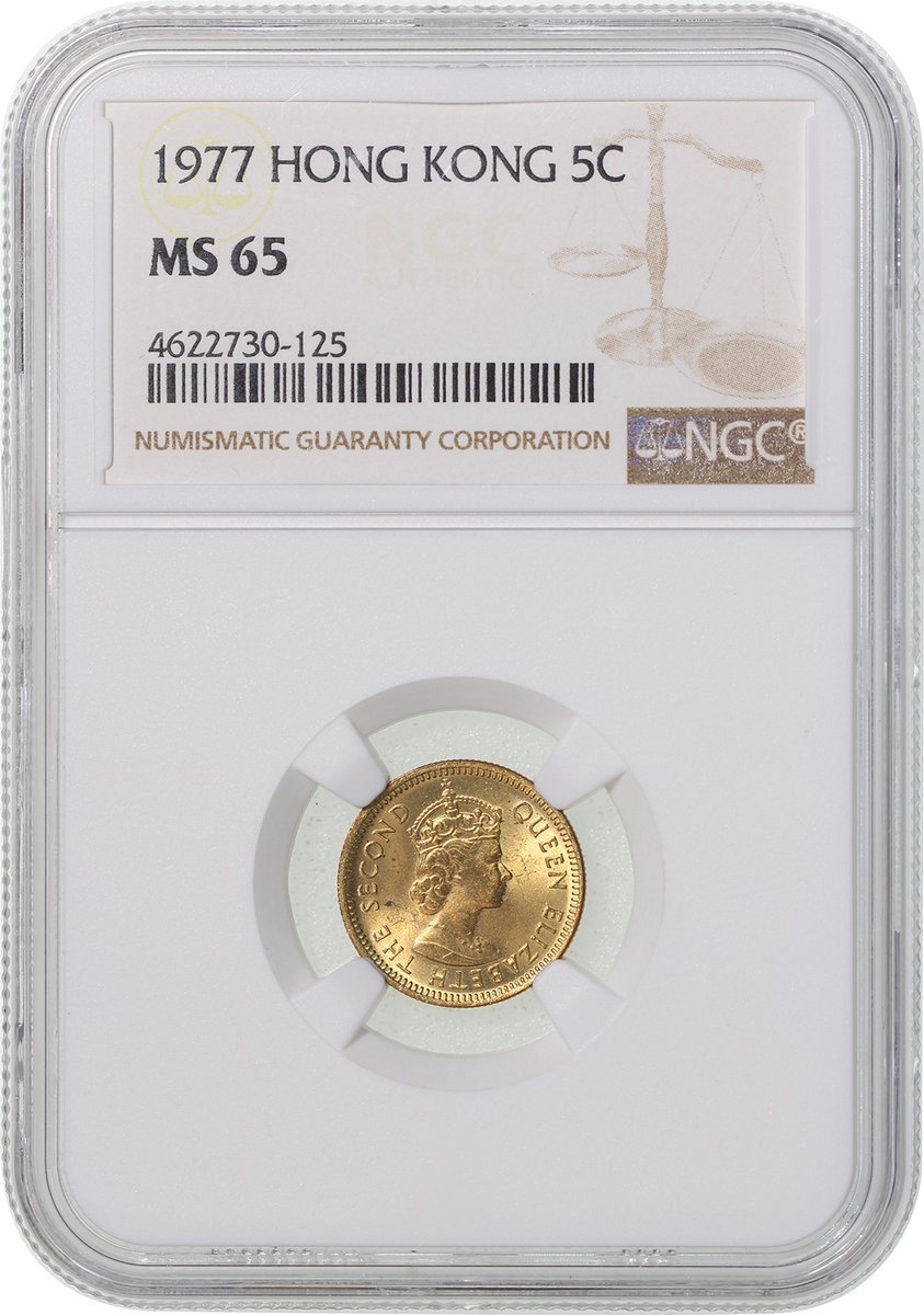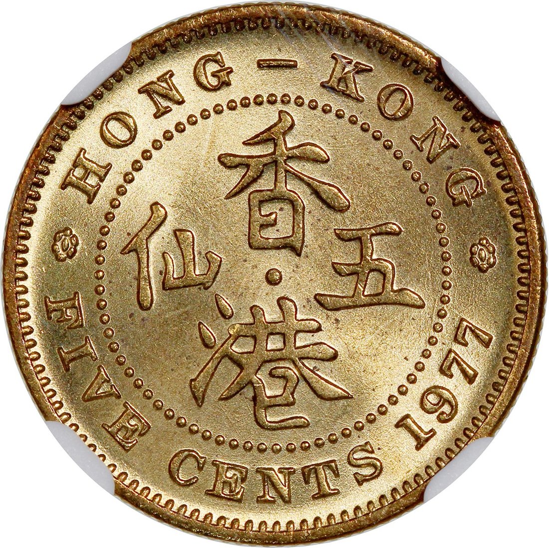Hong Kong, nickel brass 5 cents, 1977, NGC MS65