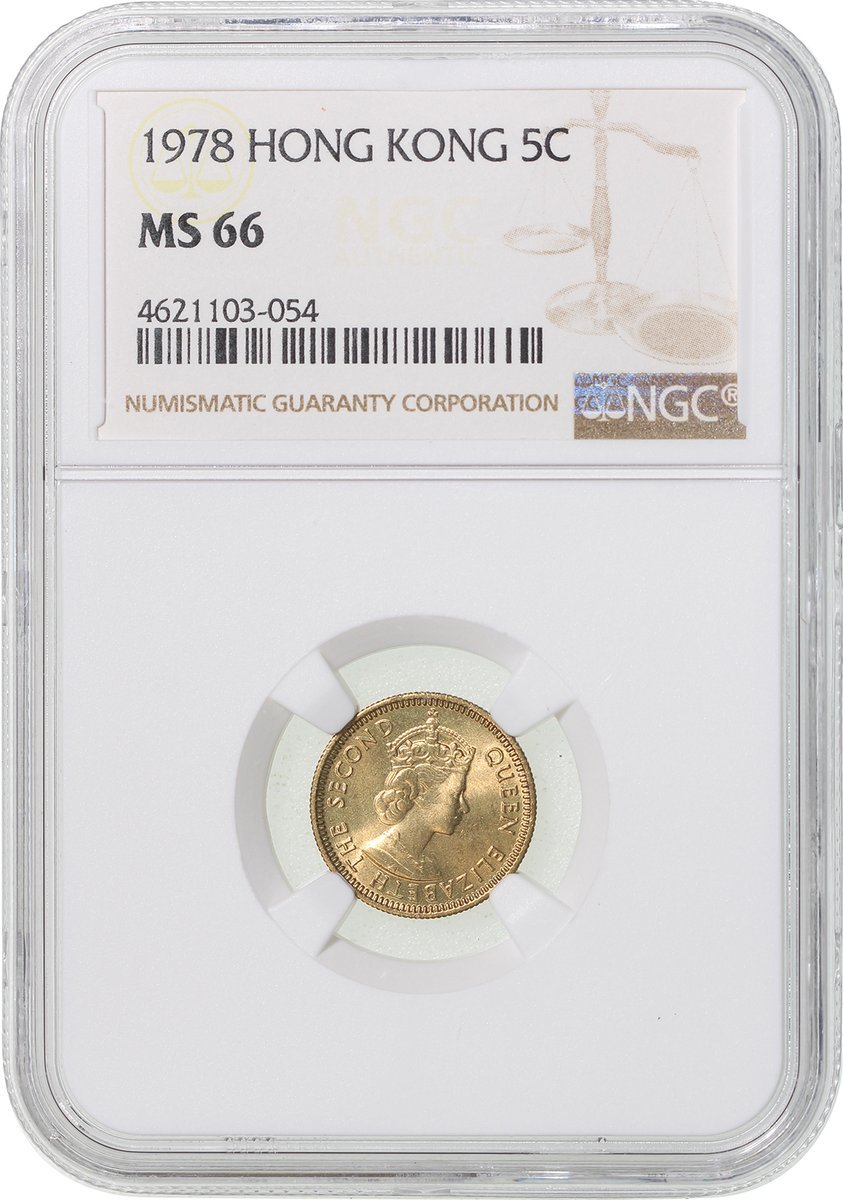 Hong Kong, nickel brass 5 cents, 1978, NGC MS66