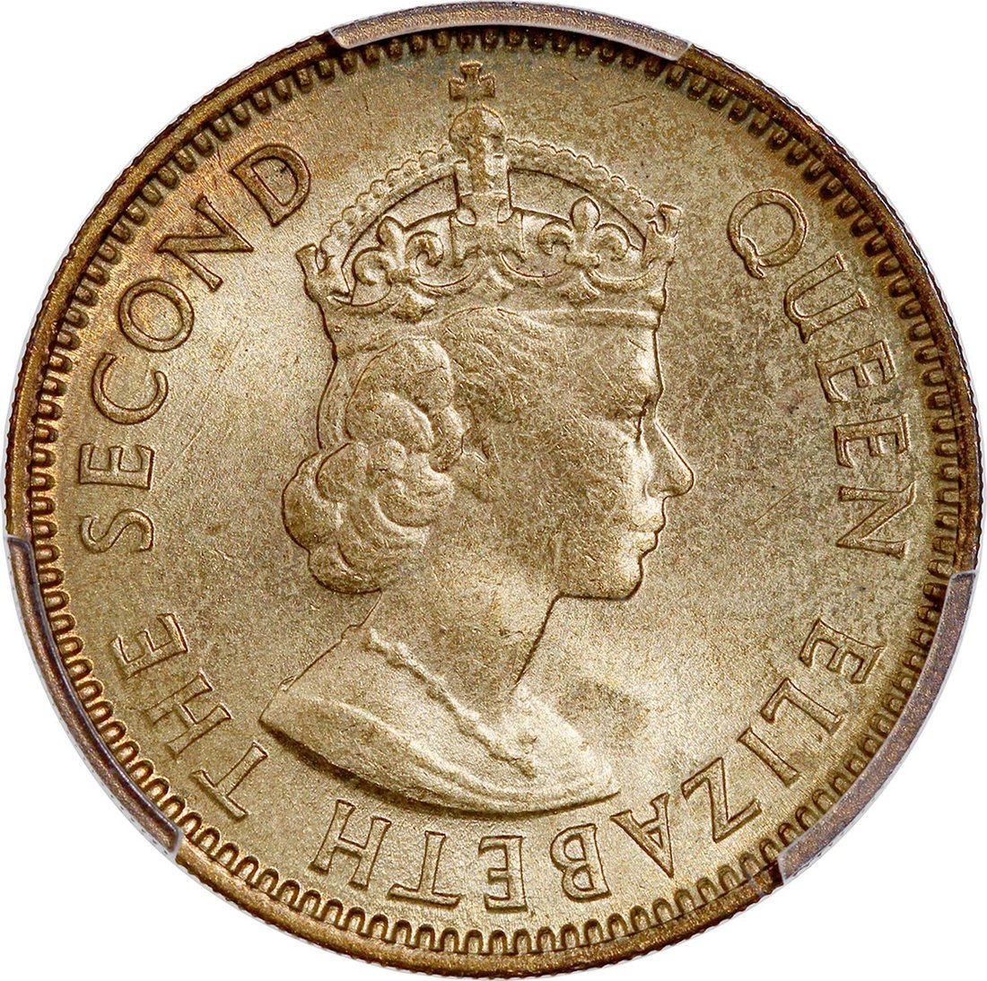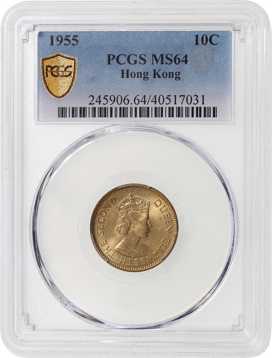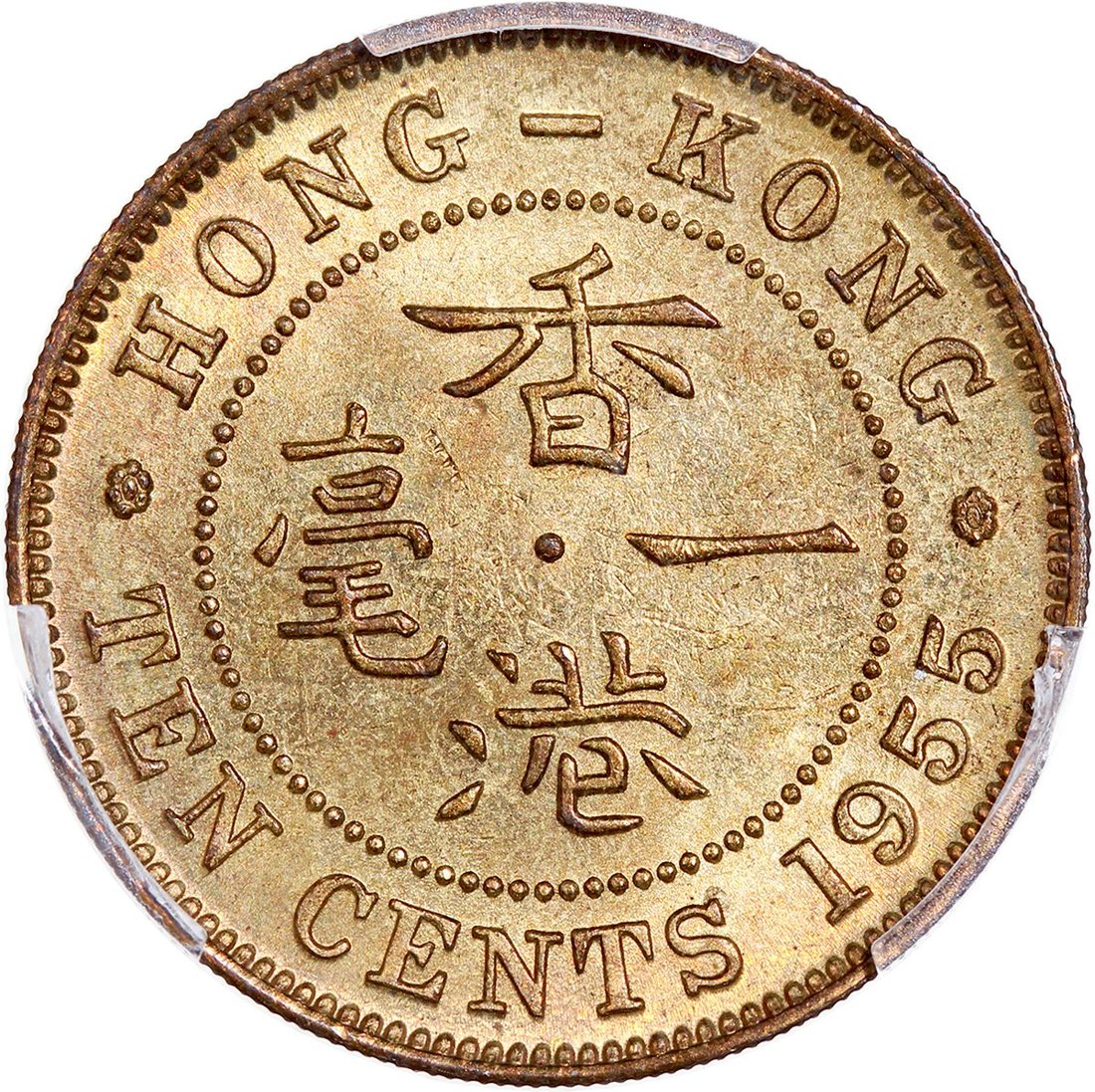 Hong Kong, nickel brass 10 cents, 1955, PCGS MS64