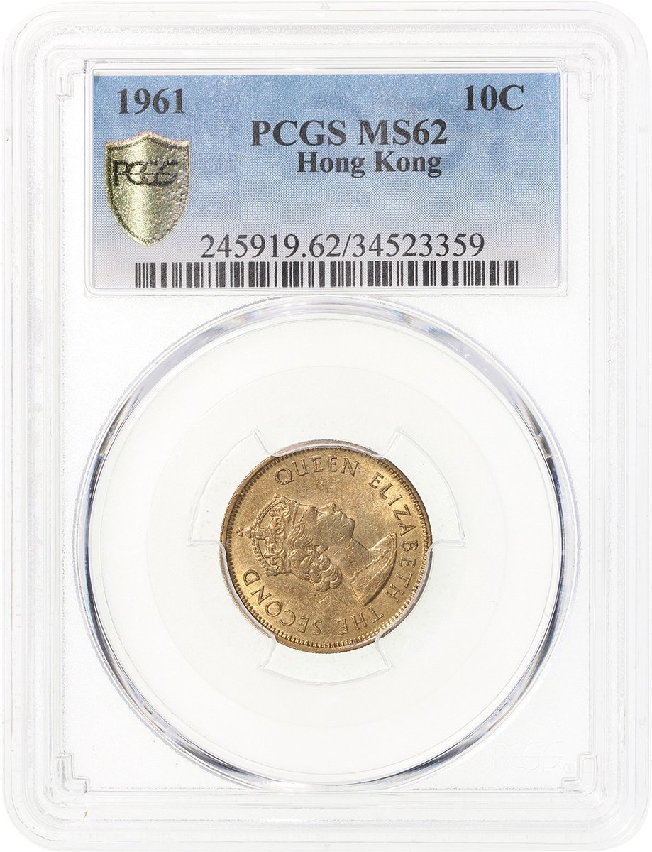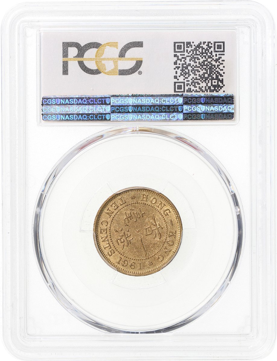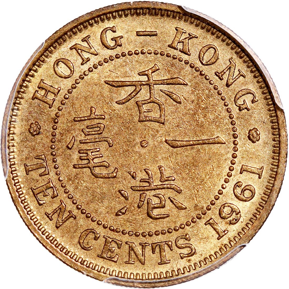 Hong Kong, nickel brass 10 cents, 1961, PCGS MS62
