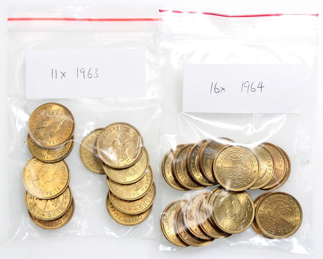 香港 一毫27枚一組,包括1963年11枚及1964年16枚,AU至UNC品相