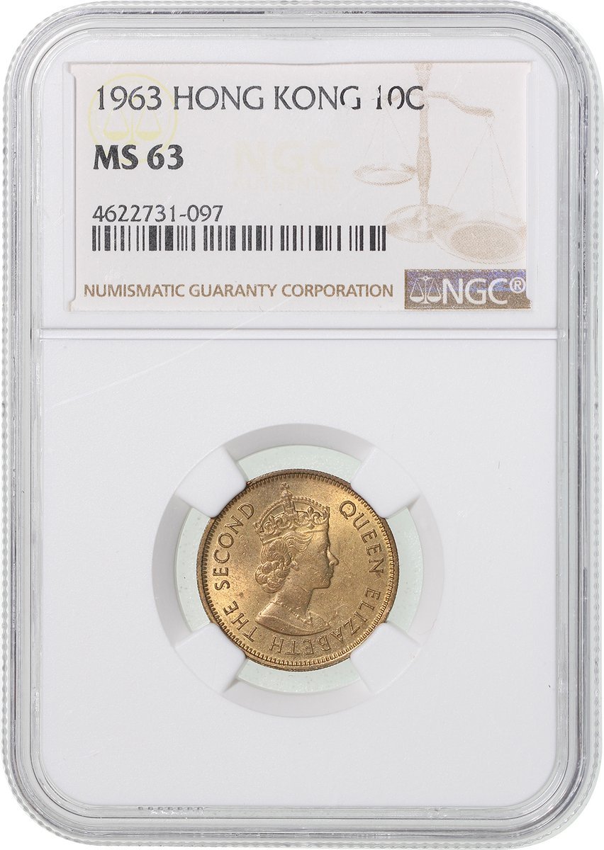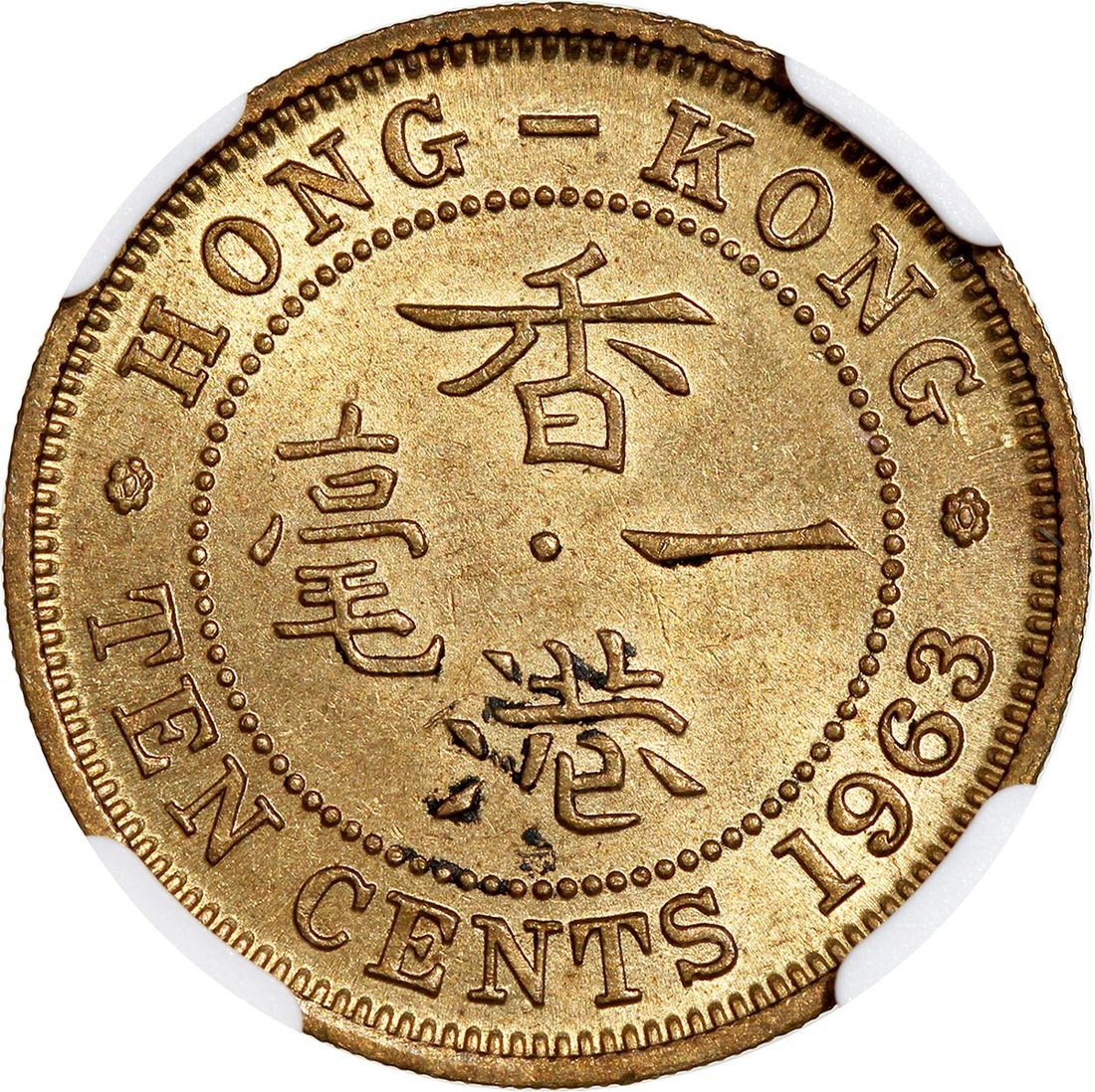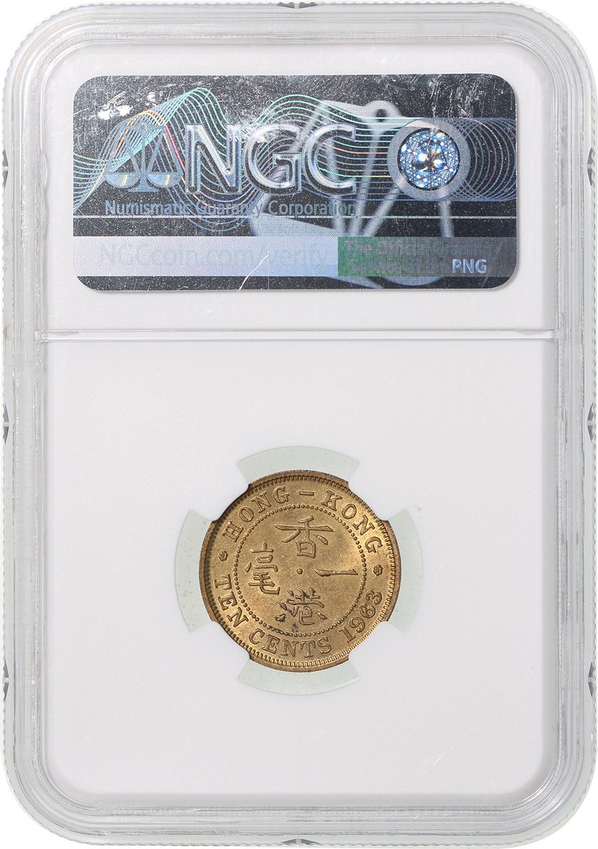 Hong Kong, nickel brass 10 cents, 1963, NGC MS63