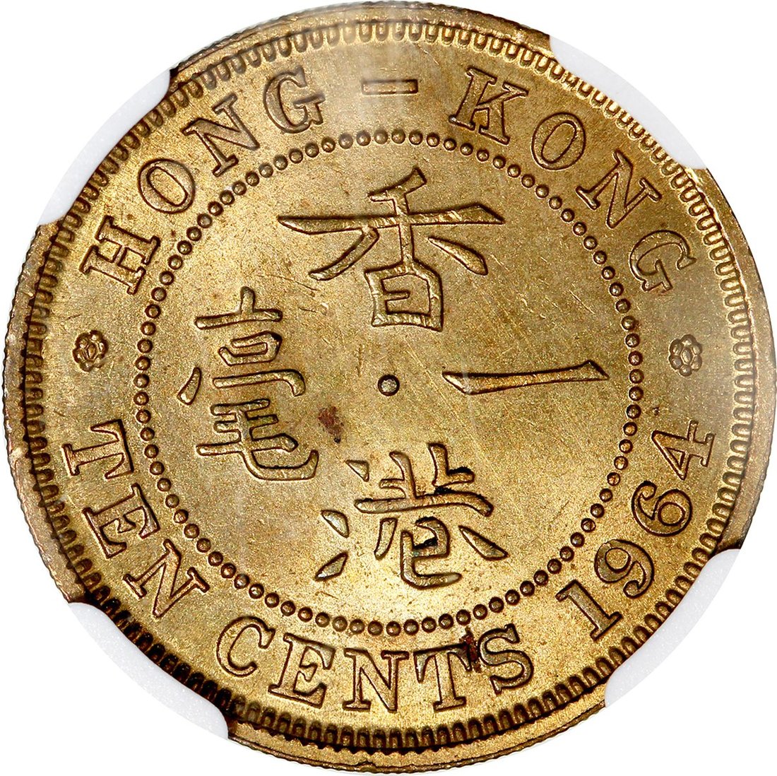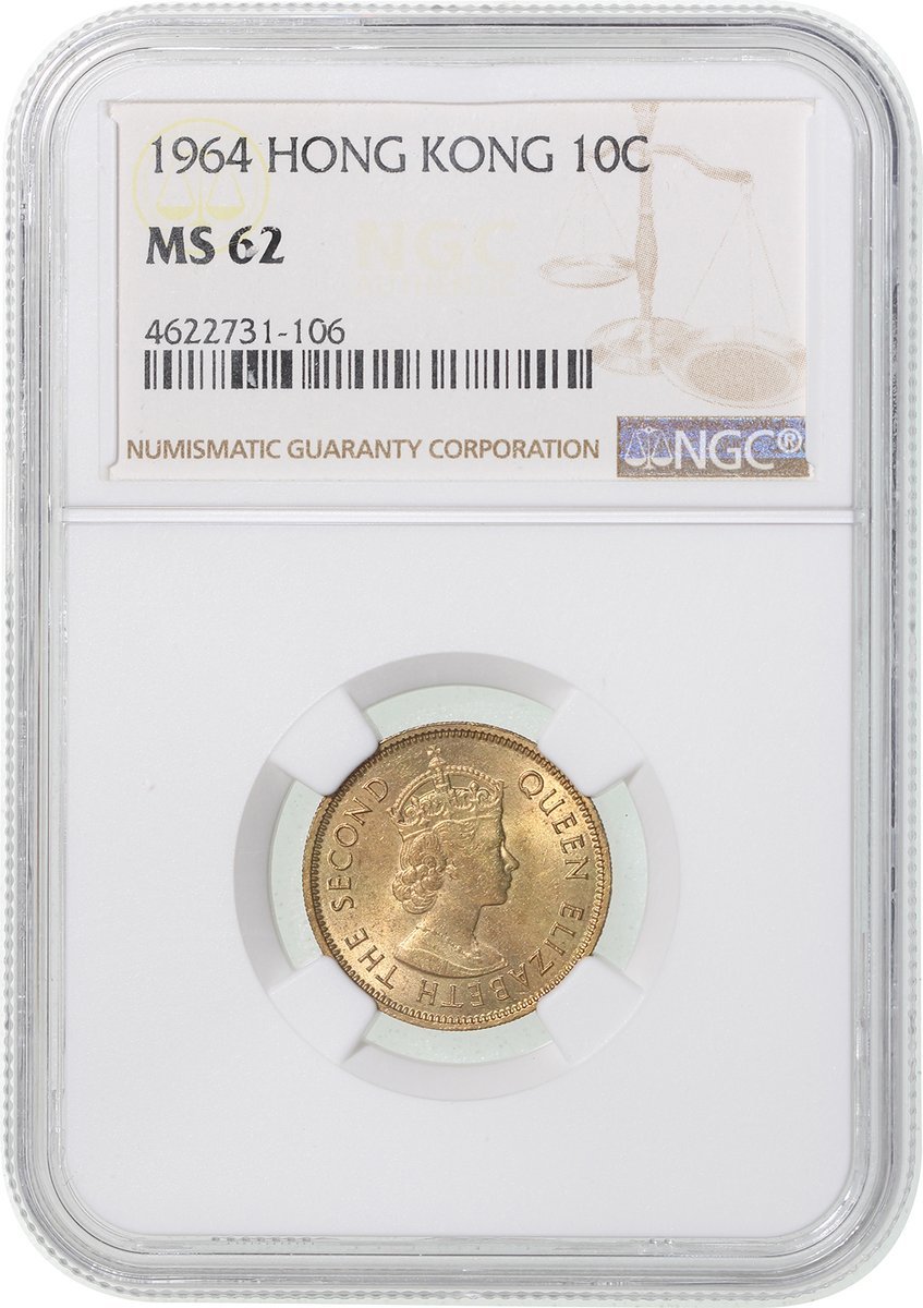 Hong Kong, nickel brass 10 cents, 1964, NGC MS62