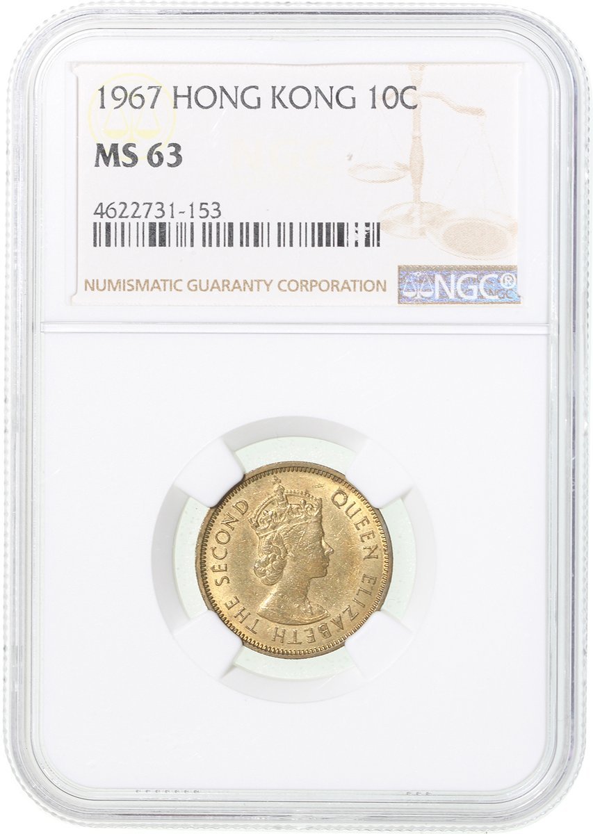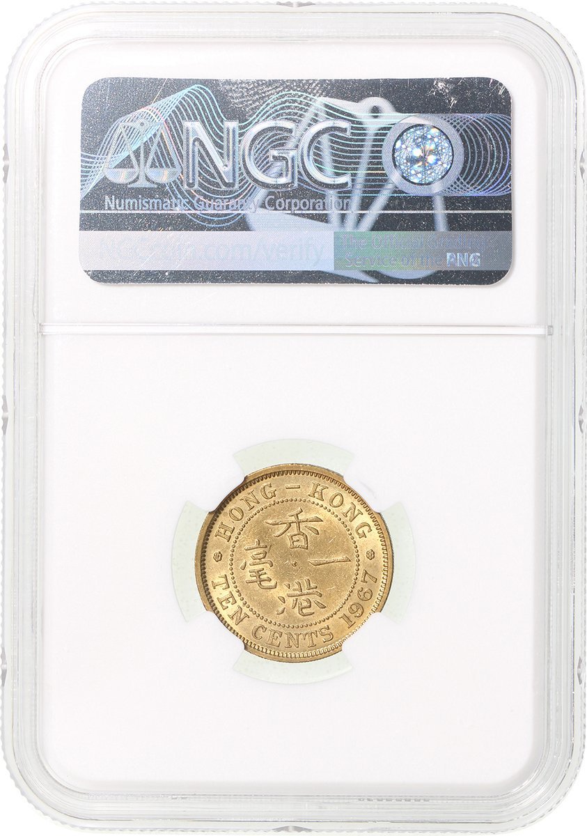 Hong Kong, nickel brass 10 cents, 1967, NGC MS63