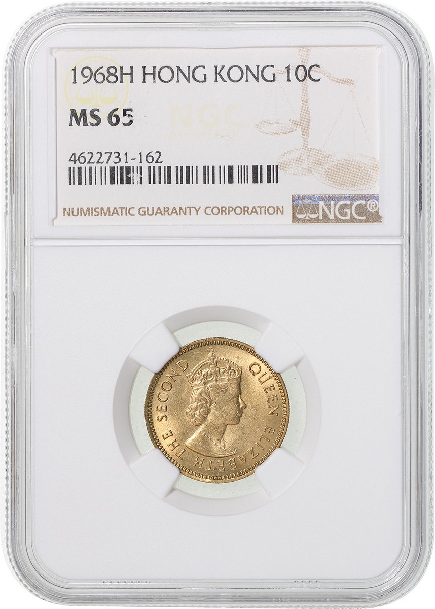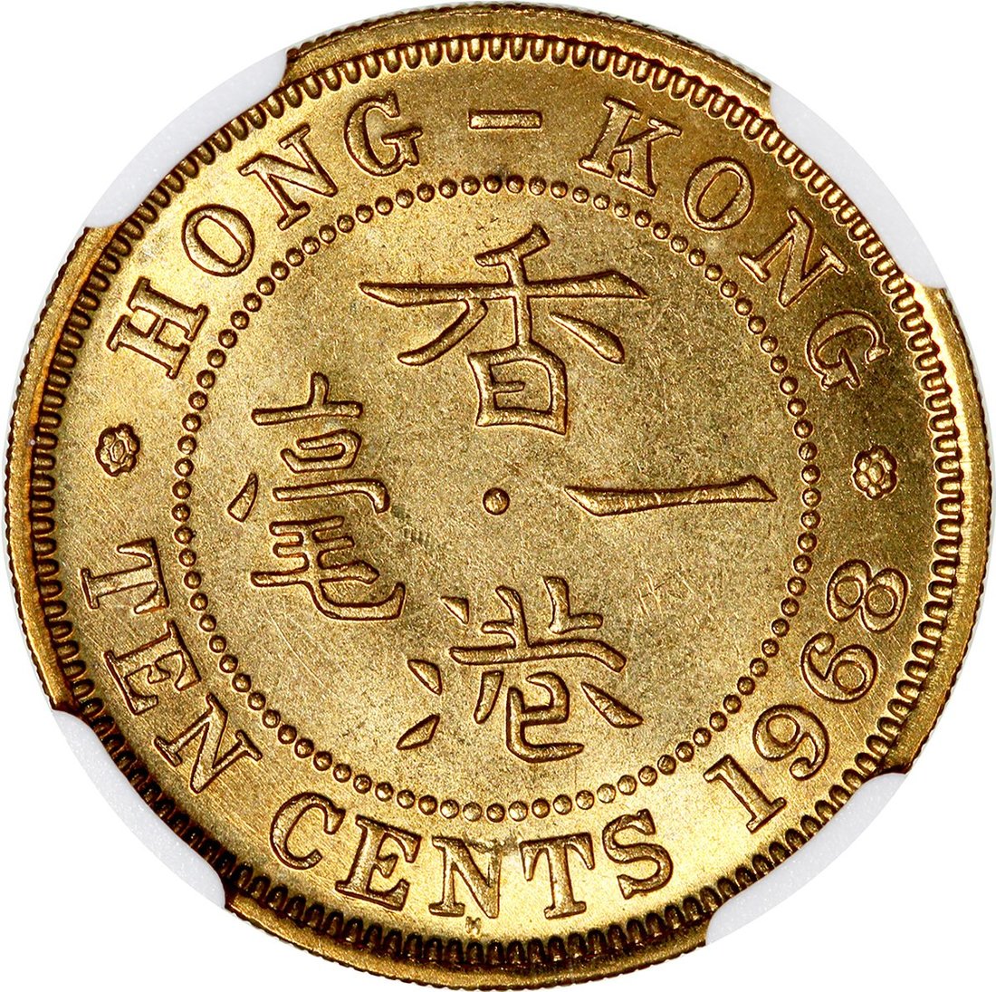 Hong Kong, nickel brass 10 cents, 1968H, NGC MS65