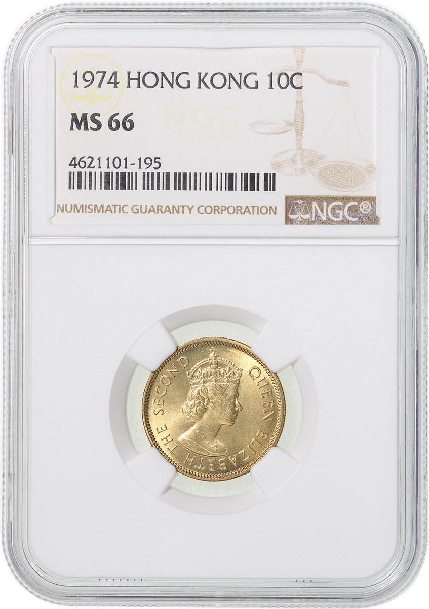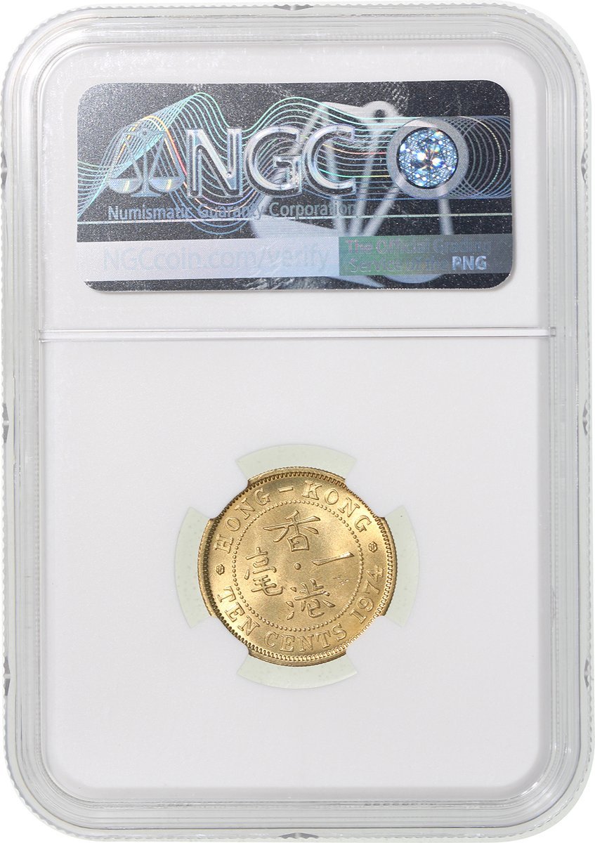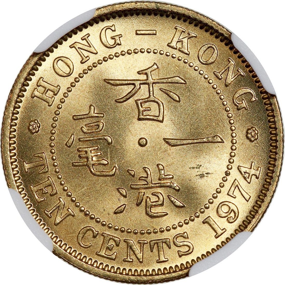 Hong Kong, nickel brass 10 cents, 1974, NGC MS66