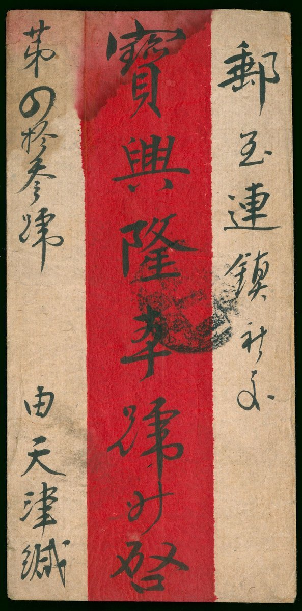 1913 (18 Apr.) red band cover from Tientsin to Lienchen bearing C.I.P. Statistical Department ovpt.3c. cancelled by "Tientsin-Pukow/1st Section /No.3" T.P.O. c.d.s. with arrival c.d.s, fine.