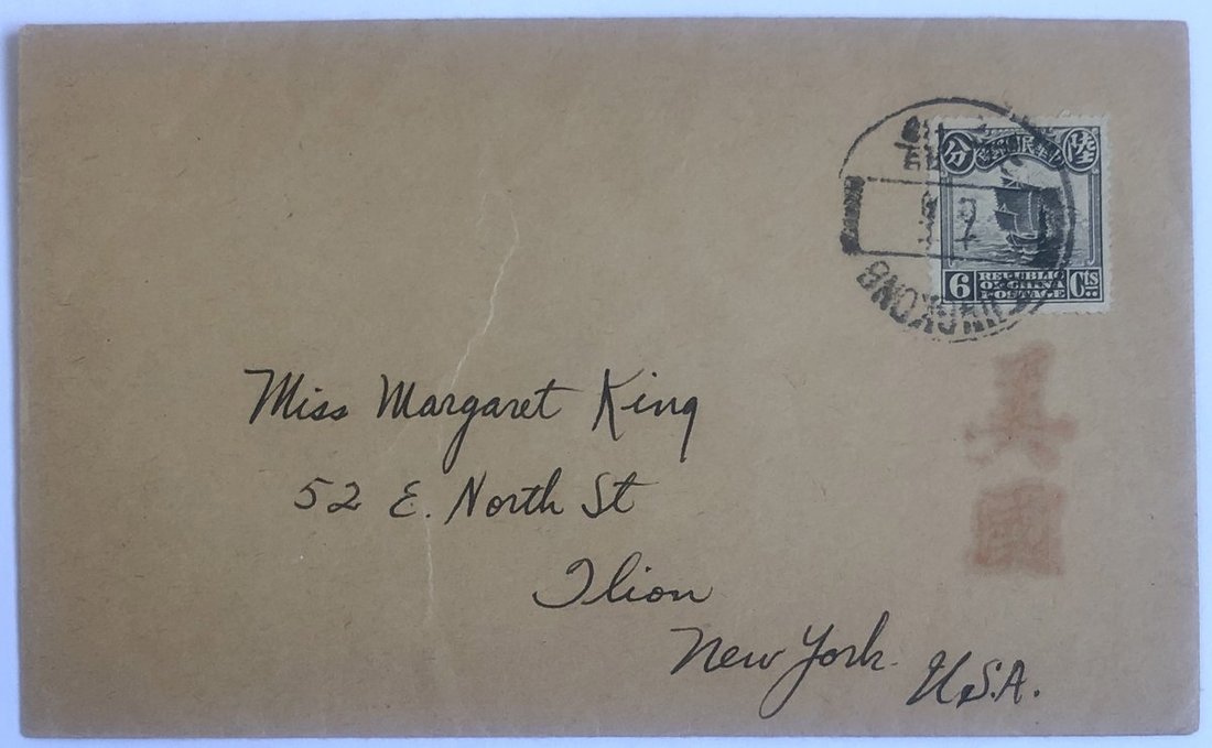 1917 ?(10 Nov.) a envelope to U.S.A. bearing Junk 6c. (printing matter rate) tied by Yeungkong (non year) c.d.s., fine.