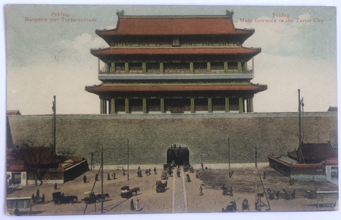 1919年北京寄義大利明信片1件,貼北京一版帆船4分1枚,銷北京12月28日小圓戳,有義大利2月2日到達戳,片背為北京哈德門城門,保存完好