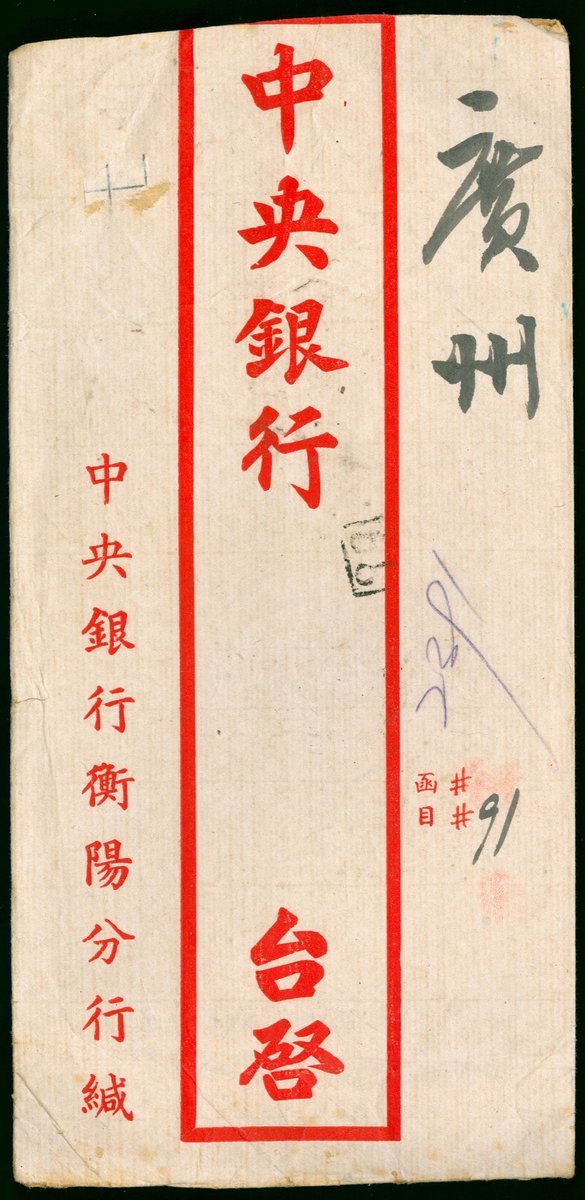 1949 (3 Jun.) registered envelope to Canton bearing Hunan overprinted Domestic Ordinary on $100, strip of four tied by Hengyang c.d.s., Canton (6.6) arrival c.d.s., fine.