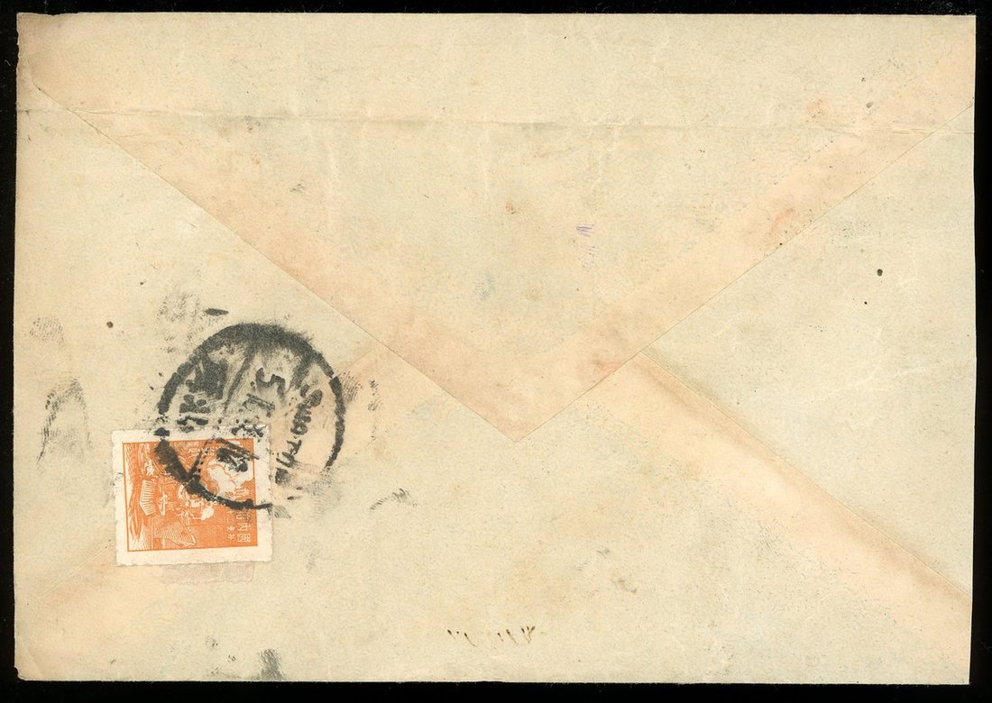 1949 (5 Oct.) Swatow to Hong Kong air mail cover. On the reverse, bearing H.K. print Unit Stamp ( Domestic ordinary) orange, tied by Swatow c.d.s.