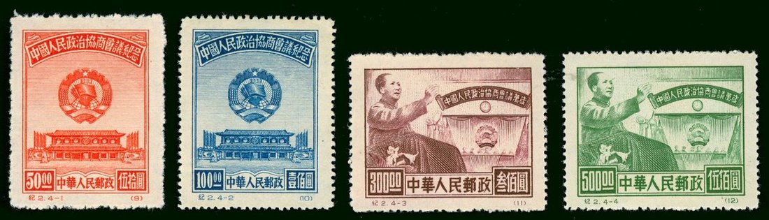 1950年紀2政治協商會議原版新票4套,票面顏色鮮豔,齒孔完整,背面紙質潔淨,上中品