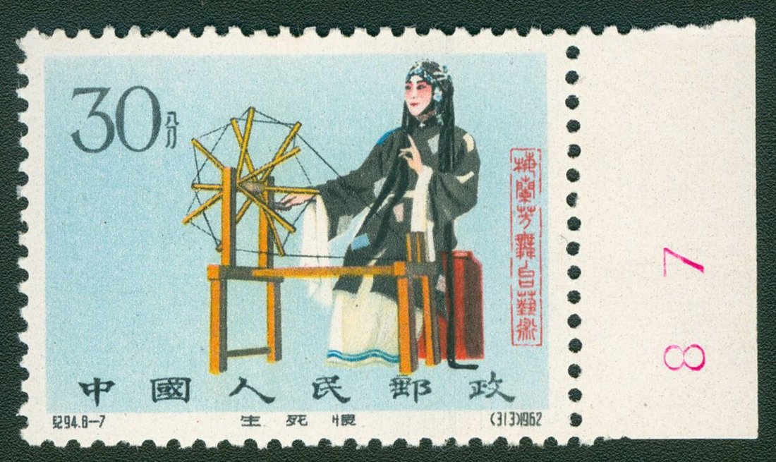 1962 (8 Aug.) C94 Stage of Art of Mei Lanfang, 30f. Remorse of Living and Dying with right margin, unmounted mint, lightly toned. Yang C313