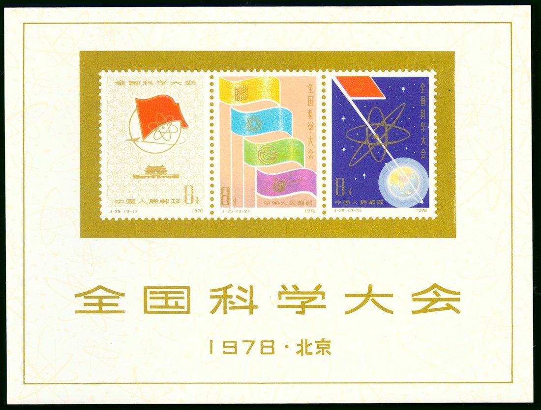 1978年J25M全國科學大會小全張1枚,票面顏色鮮豔,金粉閃亮,四角尖,紙質潔白,上品