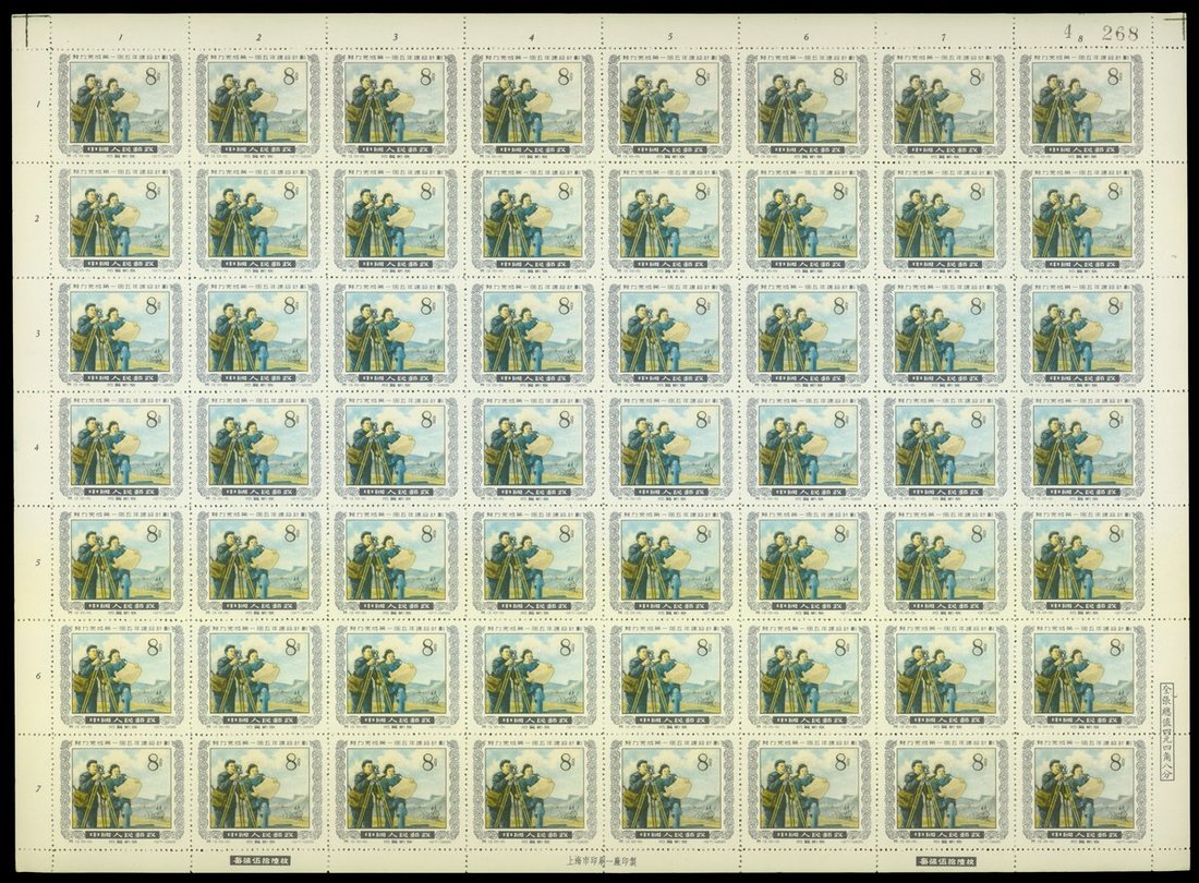 1955年特13第一個五年計劃新票56枚全張1套,邊紙完整,上中品,少見