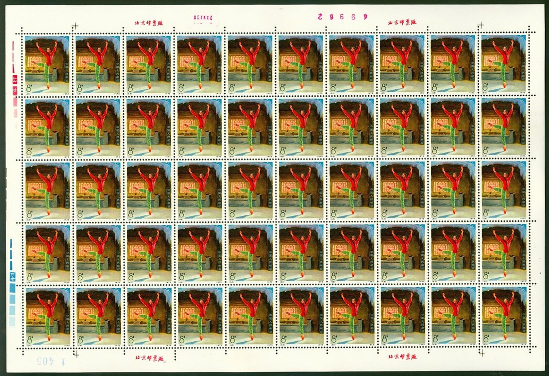 1973年編53-56白毛女新票50枚全張一套,票面顏色鮮豔,邊紙完整,原膠,背膠微黃,上中品