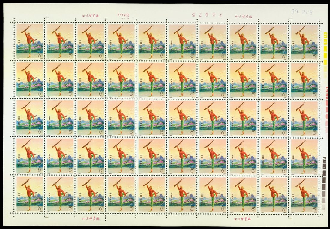 1973年編53-56白毛女新票50枚全張1套,顏色鮮豔,邊紙完整,原膠,上中品