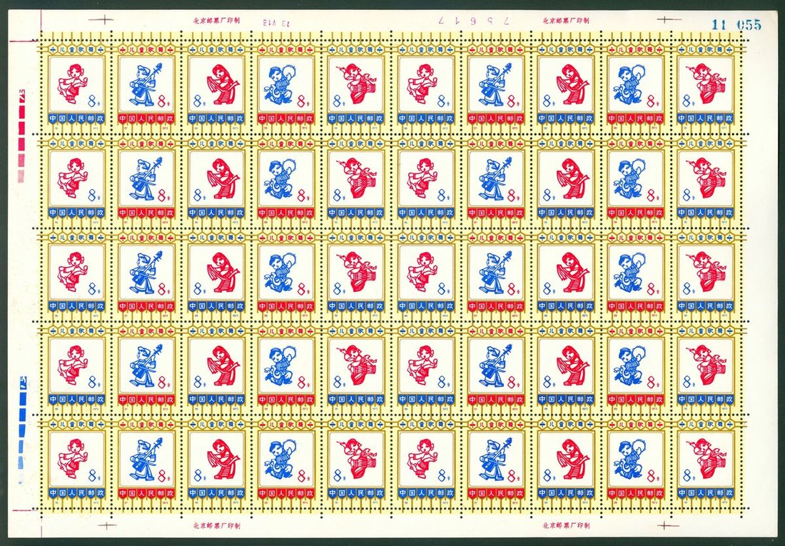 1973 (1 Jun.) Children's Song and Dance, 8f. complete set in sheet of 50, unmounted mint, lightly tonned. Yang N86-N90.