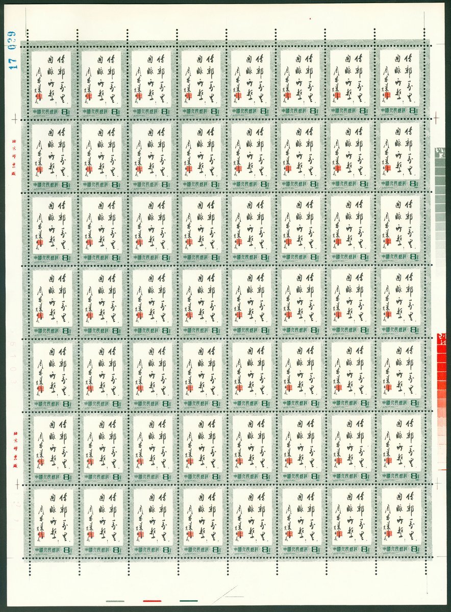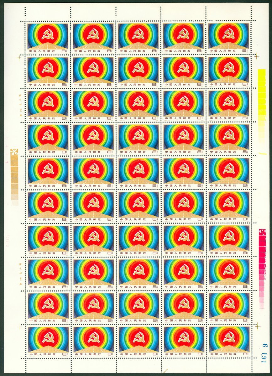 1981 (1 Jul.) J64 60th Anniv. of Communist Party of China (2); 1981 (17 May) J69 Internatiional Telecommunication Day; 1981 (9 May.) J70 Ten Thpousand Li Postal Road as Arteries and Veins of the Country; 1981 (10 Mar.) T59 Fable: Marking Gunwale, sheet of 50 and block of 40; 1982 (5 Jan.) T70 Year of the Dog and United States 1981 Space Achievement in complete sheet of 48 (2). Toned. Yang J186-J187, J174, T281-285, T350.