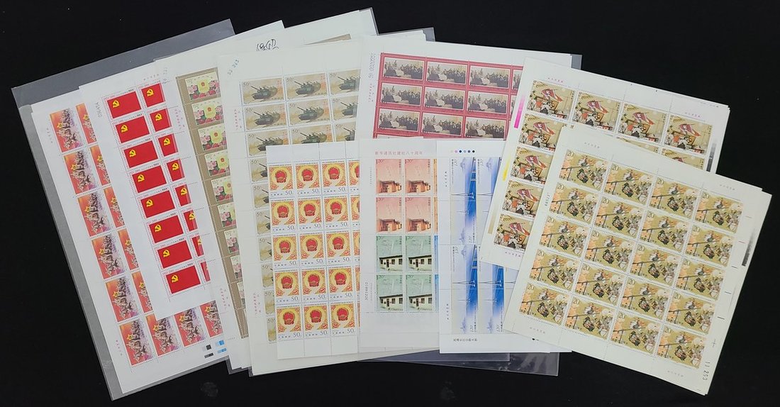 1990 (10 Dec.) T157 The Romance of the Three Kingdoms (2nd series), 20f. to 50f. complete set if sheets of 20; 1994 (24 Nov.) 94-17 Romance of the Three Kingdoms - A Literary Masterpiece of the Ancient China (4th Series) 20f. to $1 complete set in sheets of 20; 1996 (22 Oct.) The 60th anniv. of the Victory of the Long March by Chinese Worker's and Peasant's Red Army, 20f. to 50f complete set in sheets of 42; 1997 (1 Jul.) 97-10 Hong Kong's return to Motherland, 50f. to 150f. complete set in sheets of 40; 1997 (1 Aug.) 97-12 The 70th Anniv. of Founding of the Chinese People's Liberation Army, 50f. to 200f. complete set in sheets of 40; 1998 (3 Mar.) 98-7 the 9th Nathional People's Congress of the P.R.C. 50f. in sheet of 50; 1998 (14 Nov.) 98-24 Three Major Campaigns in the Liberatiion War 50f. to 150f. complete set in sheets of 40; 2001 (1 Jul.) 2001-12 The 80th Anniv. of the Founding of the Communist Party of China, 80f. in sheet of 40; 2008 (12 Apr.) 2008-8 Suzhou-Nantong Yangtze River Bridge $1.2 in sheet of 10; 2011 (7 Nov.) 2011-28 The 80th Anniv. of Xinhua New Agency $1.2 four sets in sheet (2) Yang T648-T651, 146-149, 342-343, 381-382, 389-393, 453, 503-507, 697,