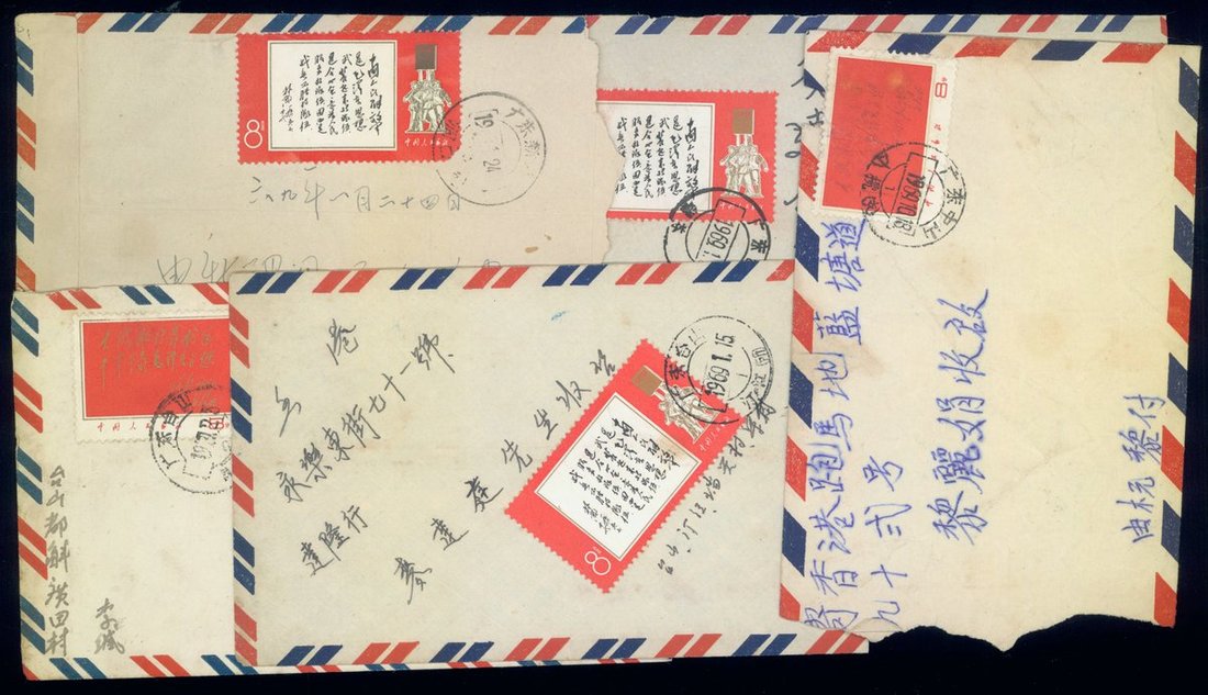 Cover: 1969 Five covers from Guangdong small town to Hong Kong in Cultural Revolution period, included Xiaolan, Tingjiang, Doushan etc., condition fine.