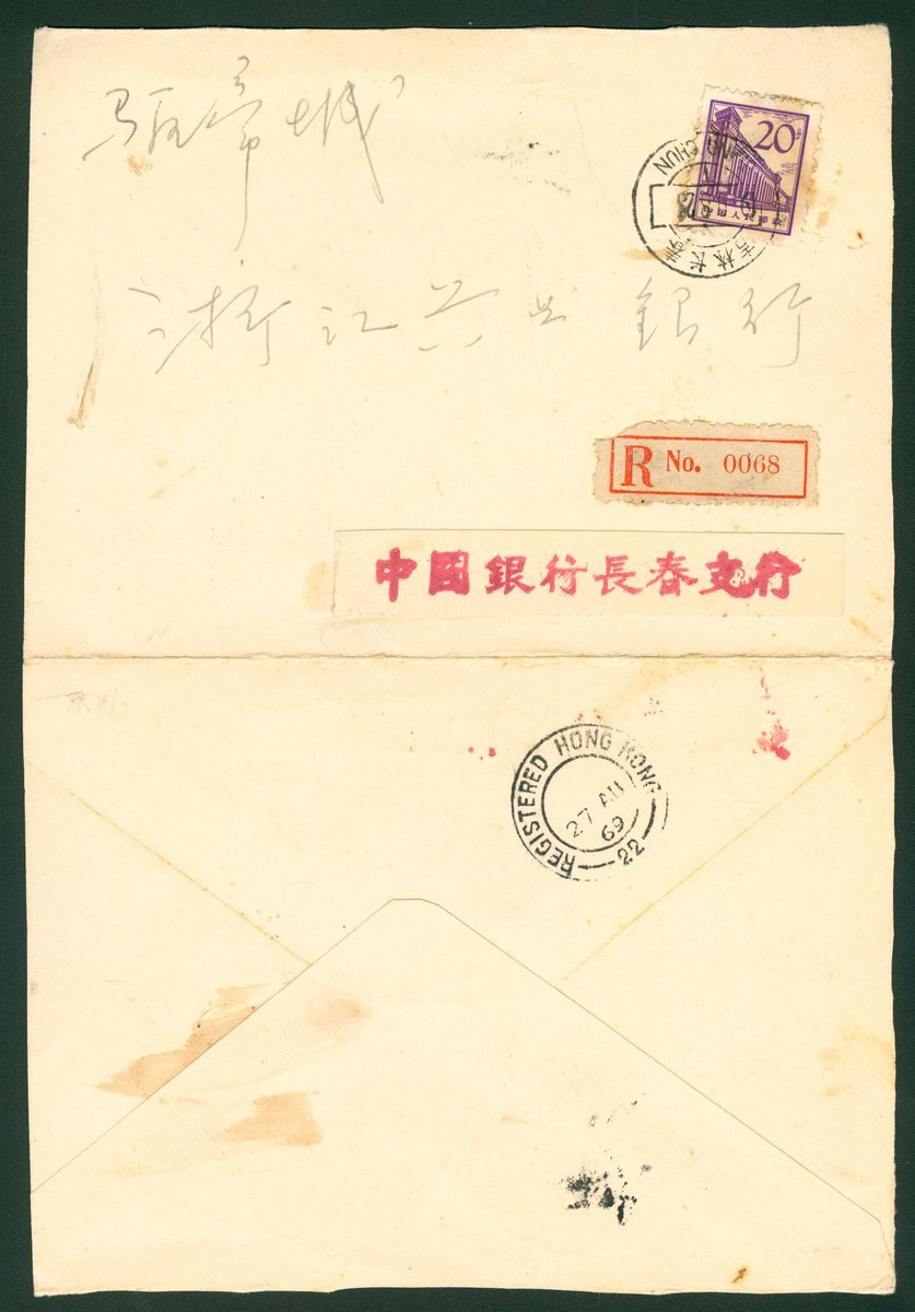 1969 (23 Aug.) registered opened-out cover from Changchun to Hong Kong. bearing 20f. tied by Changchun c.d.s.. It is worth noting that Hong Kong is written as "anti-imperialist city" on the envelope, which reflects the rare envelope sent to Hong Kong during the Cultural Revolution era.