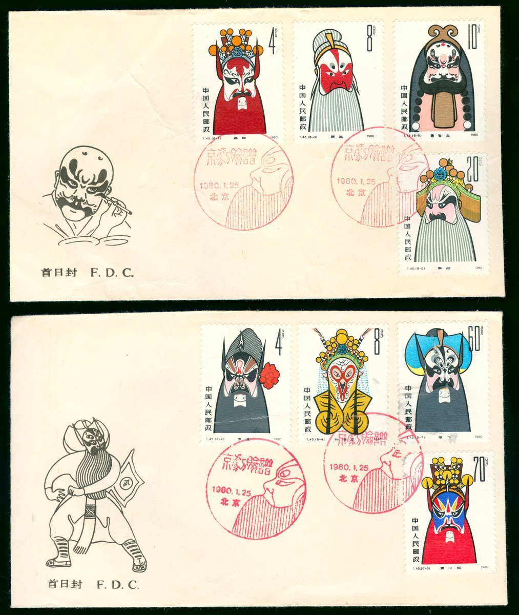 1980 (25 Jan.) T48 Facial Maseups in Beijing Opera F.D.C. (2), fine with crease.