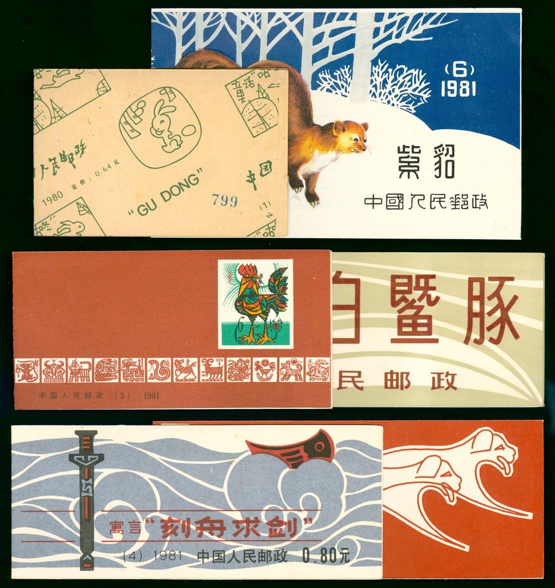 A smalll group of J and T series stamp booklet including T51 Fairly Tale - Gudong (2); T57 Chinese River Dolphin (4); T58 Year of the Cock (4); J63 Stamp Exhibition of P.R.C. in Japan (2); T59 Fable: Marking Gunwale (2); T66 Sable; T70 Year of the Dog. Yang T249-T252, T278. T280-T285, T336-337, J172-173. T350.