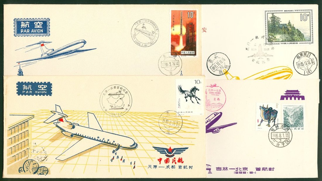1980年代新中國各地首航紀念封15件,分貼各種JT郵票,銷各地郵戳,整體保存完好