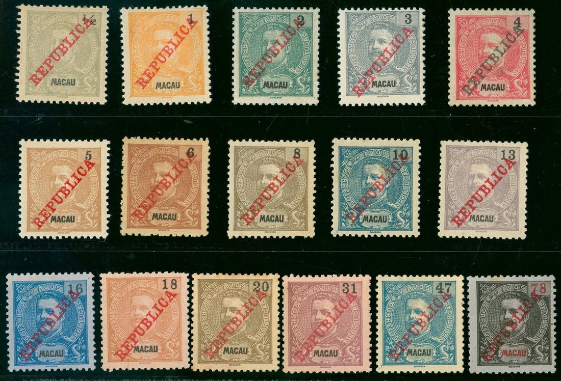 1911 D. Carlos I overprint "REPUBLICA", 1/2a. to 78a., mint mixed condition. Yang 149-164.