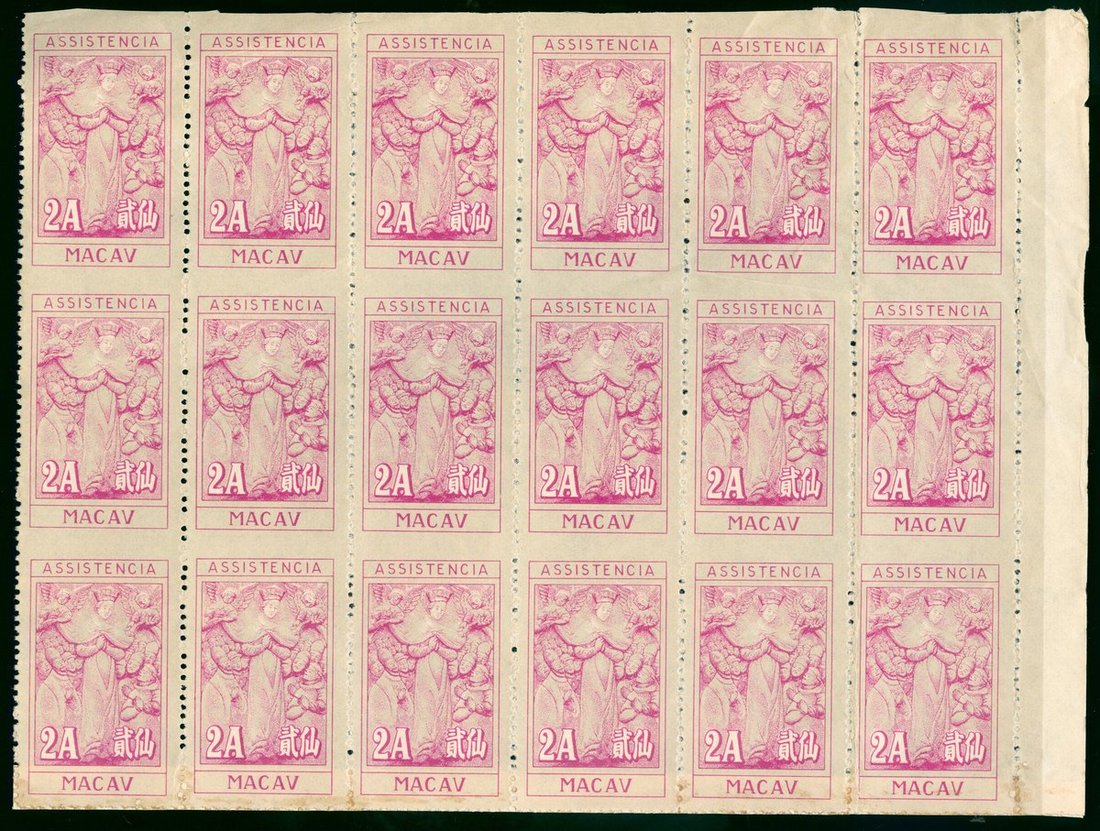1956 Charity Tax Stamp, 2a. in block of 18 with right margin, imperforate between horizontal. Yang T23b
