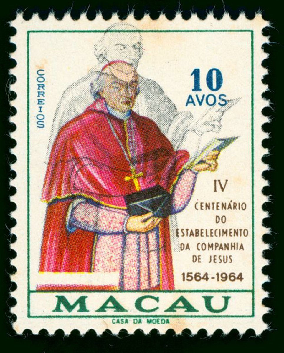 1964 4th Centenary of the Establishment of Jesuitas in Macau 10a. unissued, with black double printed variety, minor toned.