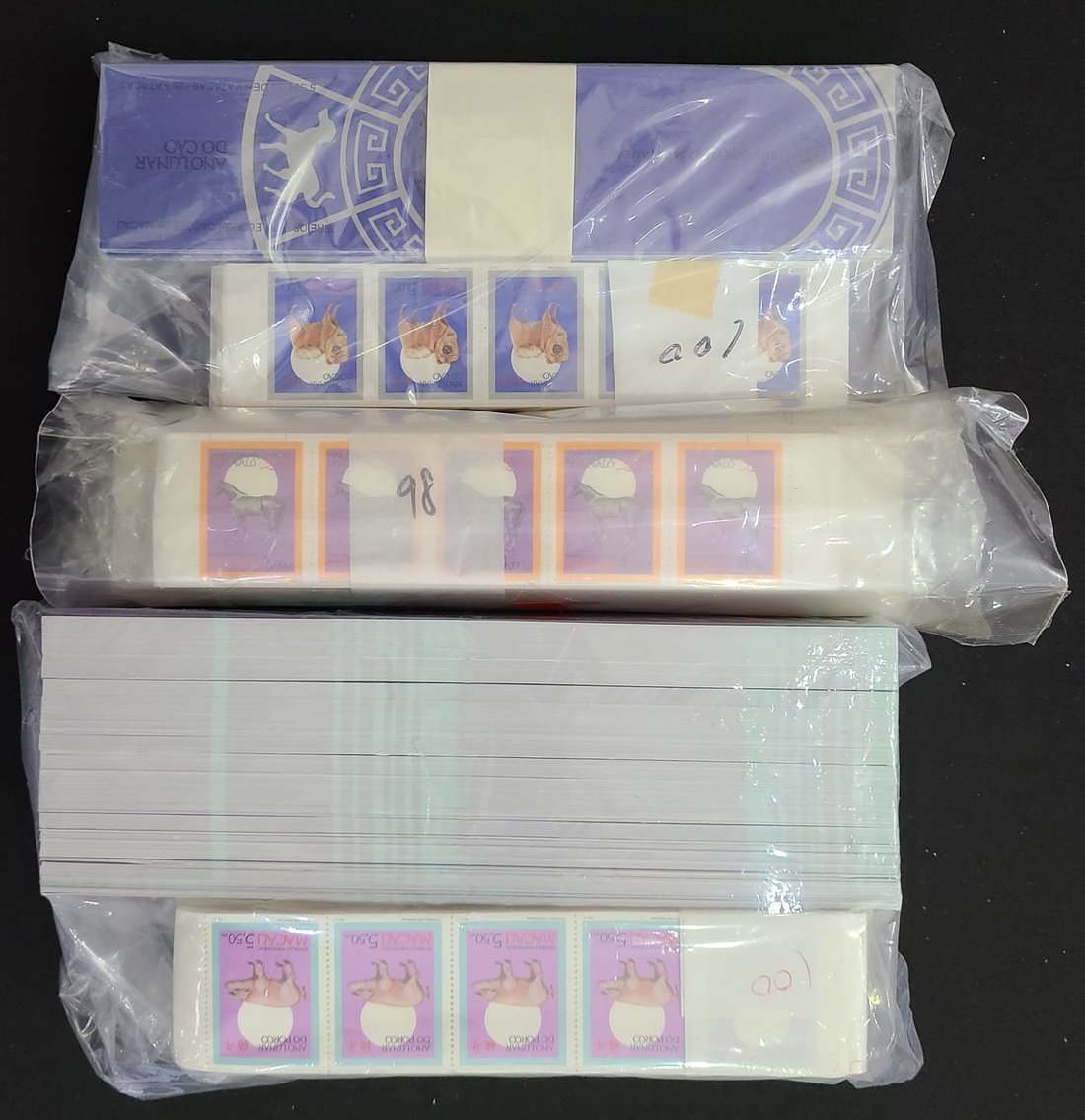 1990 Year of the Horse booklet (98), 1994 Year of the Dog booklet (100) and 1995 Year of the Pig booklet (300), unused.