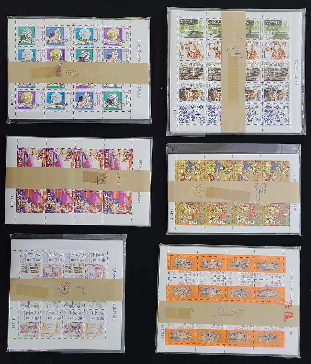 1997 S93 Ma Kok Miu temple, complete set in stripe of 3 (50 sheets); S95 Legends and Myths (4the series)-Gateway Gods, set in stripe of 4 (50 sheets); S96 Balconies, set in block of 6 (50 sheets); S97 Traditional Chinese Fans set in stripe of 4 (50 sheets); S98 Feng Soi, set in stripe of 5 (50 sheets); S99 Martial Arts, set in stripe of 3 (50 sheets)
