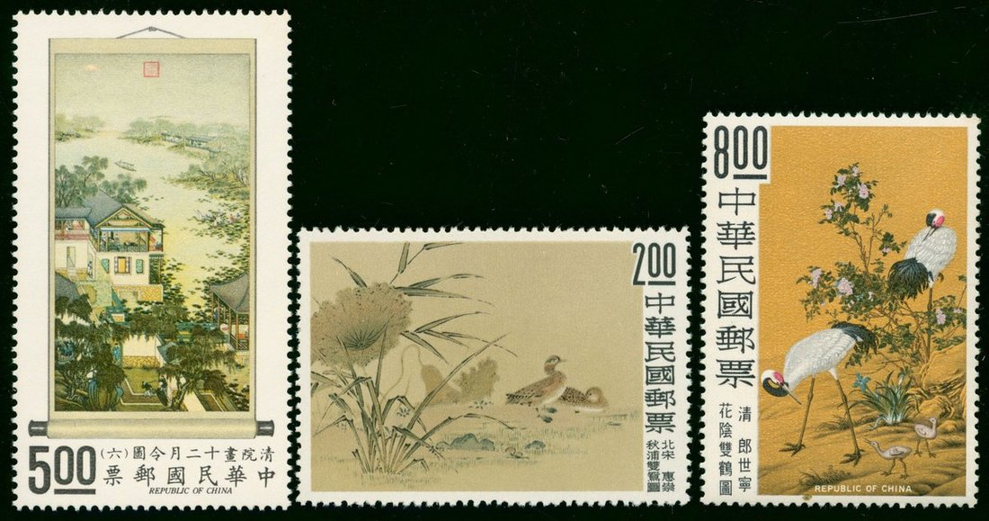1960-70臺灣古畫系列新票一組,包括故宮古畫2套,花鳥圖古畫1套,十二月令1套,整體票面鮮豔,齒孔完整,原膠微黃,上中品