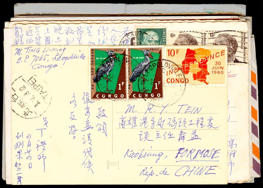 1960-80 a group of correspondent incoming picture postcards and covers (25) to Kaohsiung from Japan, U.S.A., Spain and Congo etc.